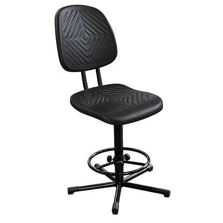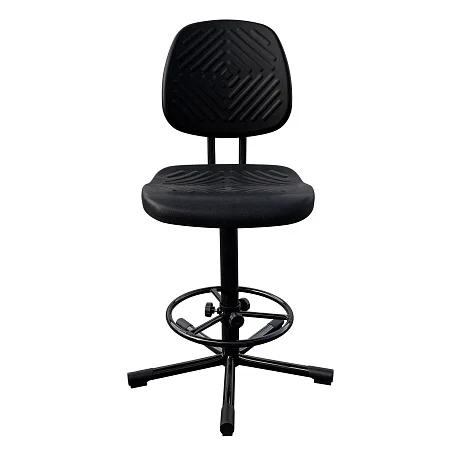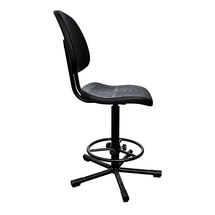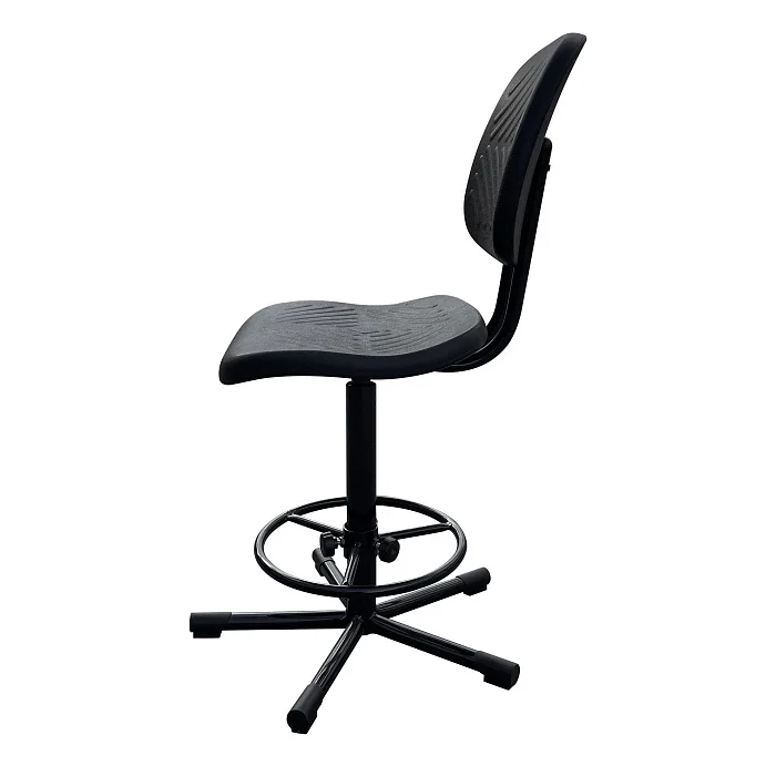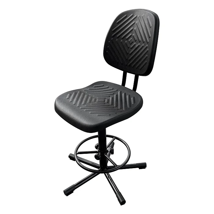 Практичное кресло для ежедневной работы в медицинских и лабораторных зонах, учебных классах, производственных и офисных помещениях. Модель КР10-2(1) выполнена в чёрном полиуретане и рассчитана на интенсивную эксплуатацию.