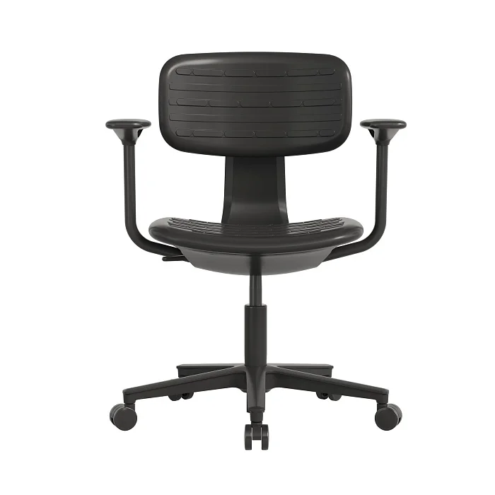 Практичное кресло с подлокотниками КР23/П на газлифте и колесах для ежедневной работы в помещениях с высокой нагрузкой: на производстве, в учебных аудиториях, лабораториях, медицинских и социальных учреждениях, а также в офисах. Надёжный каркас из нейлона со стекловолокном и износостойкие элементы из пенополиуретана обеспечивают долгий срок службы и удобство посадки. Опора диаметром 600 мм для уверенной устойчивости. Высота сиденья: от 360 до 460 мм.