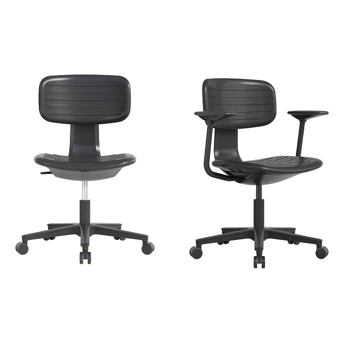 Каркас из нейлона, усиленного стекловолокном, дает хорошую жесткость при относительно небольшом весе. Это удобно, когда кресло нужно часто перемещать между рабочими зонами или быстро освобождать пространство под уборку.