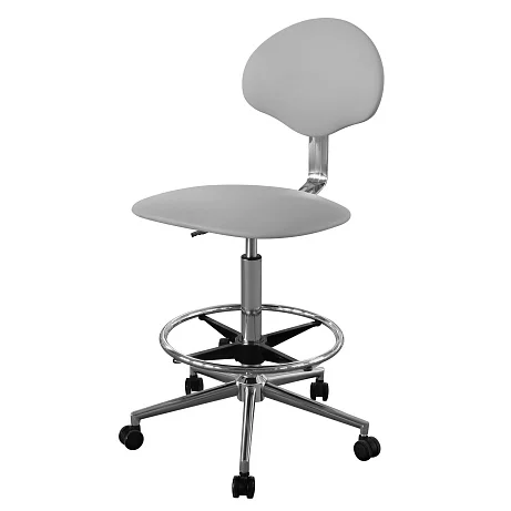 В базовую комплектацию входят: регулируемое по высоте кольцо-опора для ног, стальной каркас с гальваническим (хромированным) покрытием, колёсные опоры, обивка качественная экокожа.