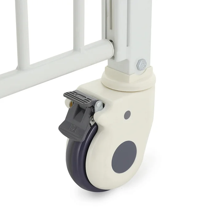Каждое колесо оснащено индивидуальным тормозом с одновременной блокировкой поворота. Это позволяет надежно зафиксировать кровать в нужном положении во время ухода за пациентом, проведения осмотров или процедур. Для медицинского персонала такая система означает больше контроля и уверенности в стабильности оборудования.