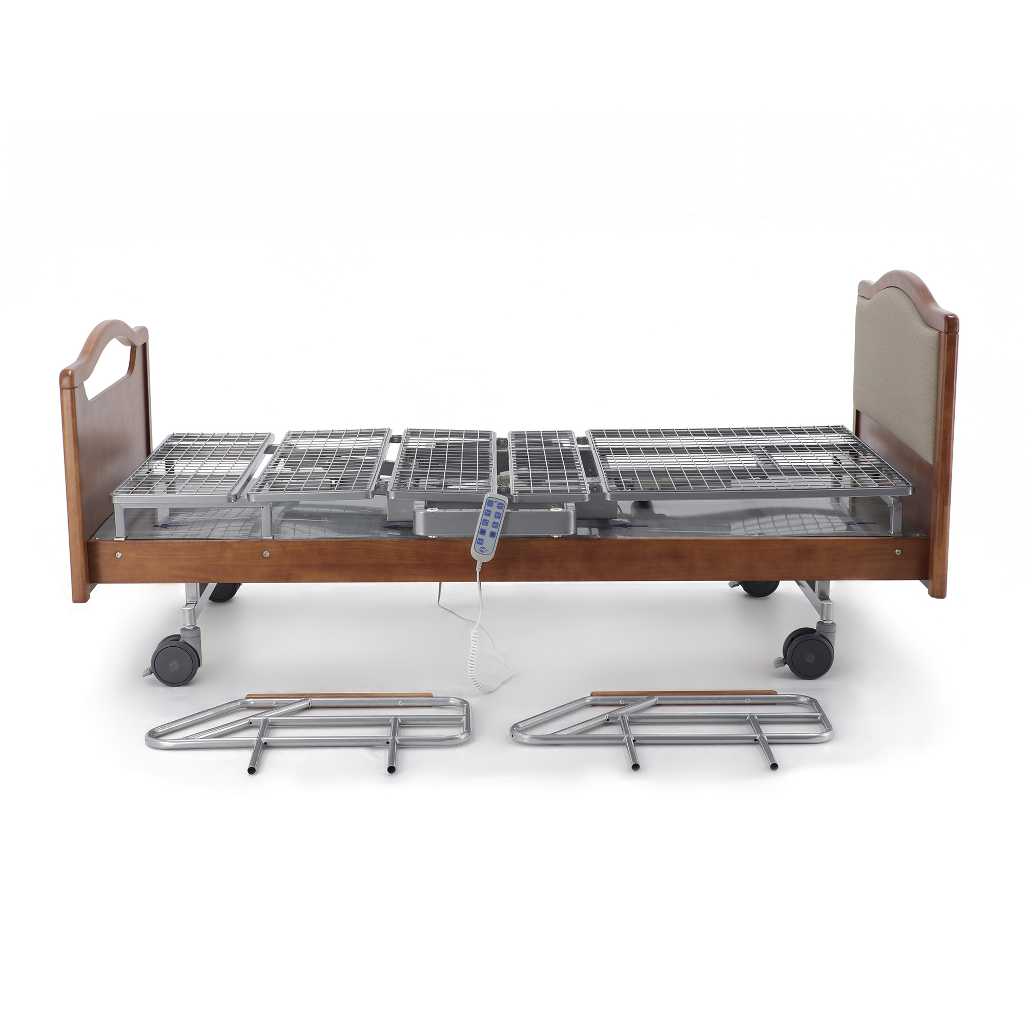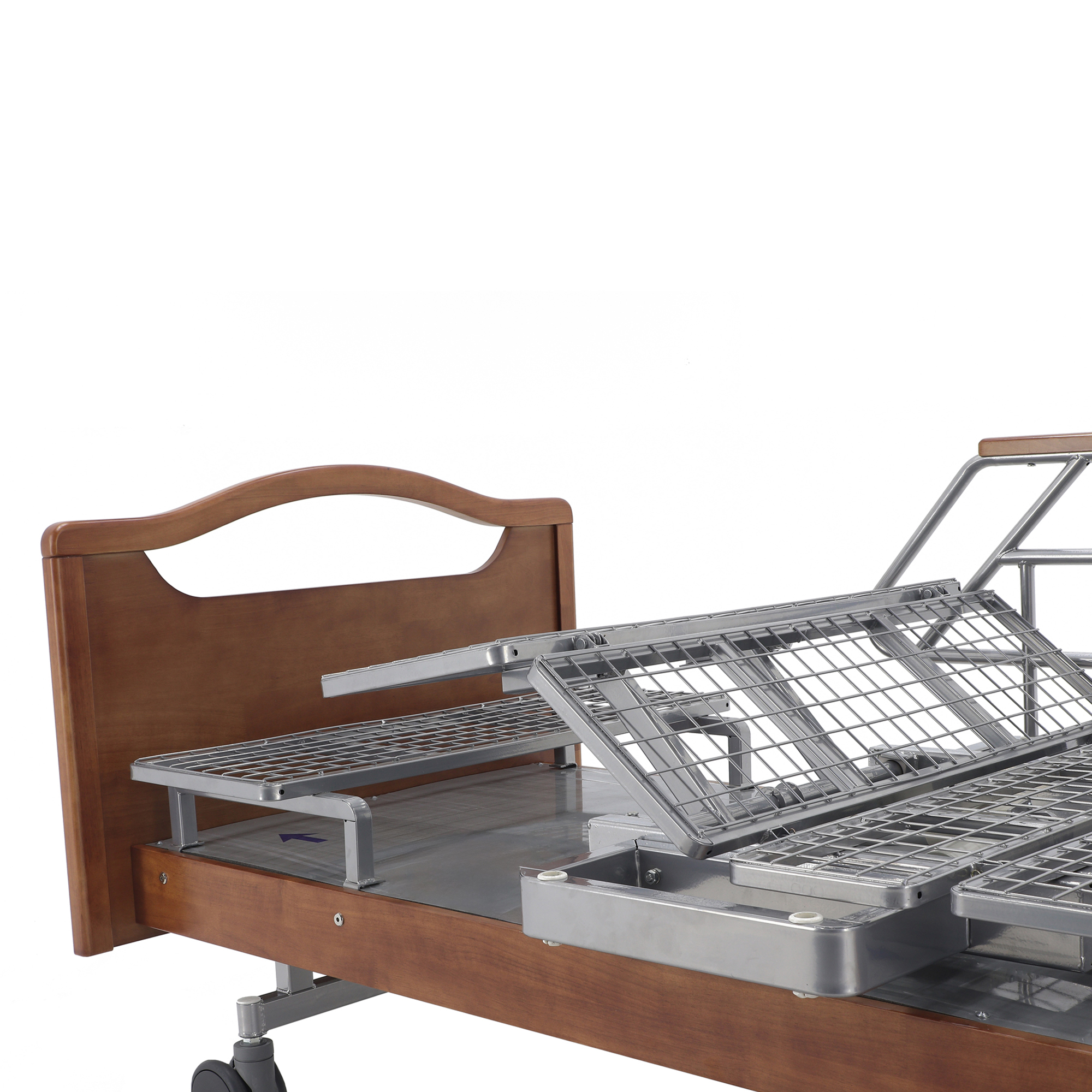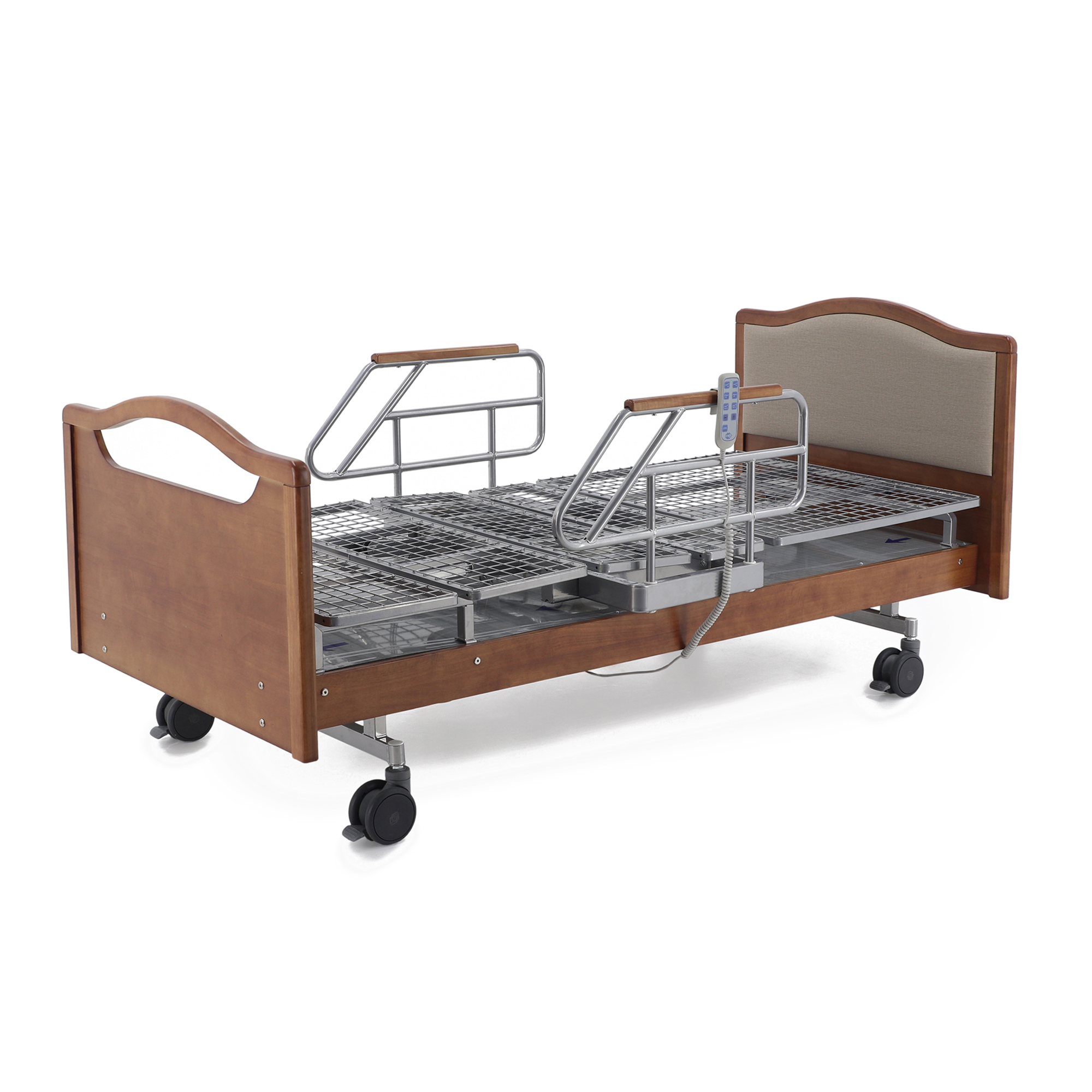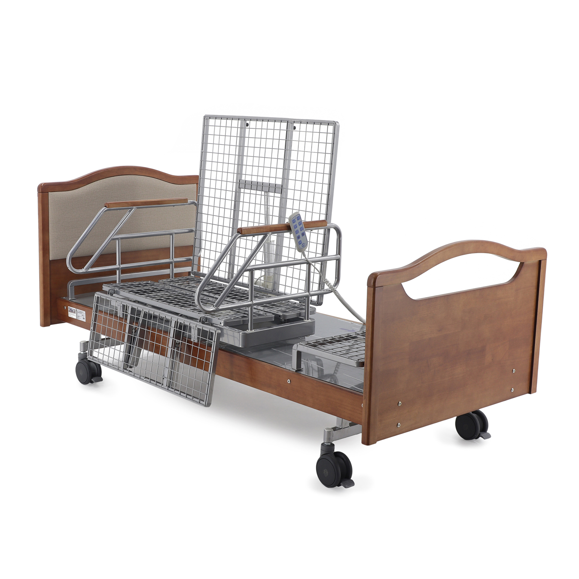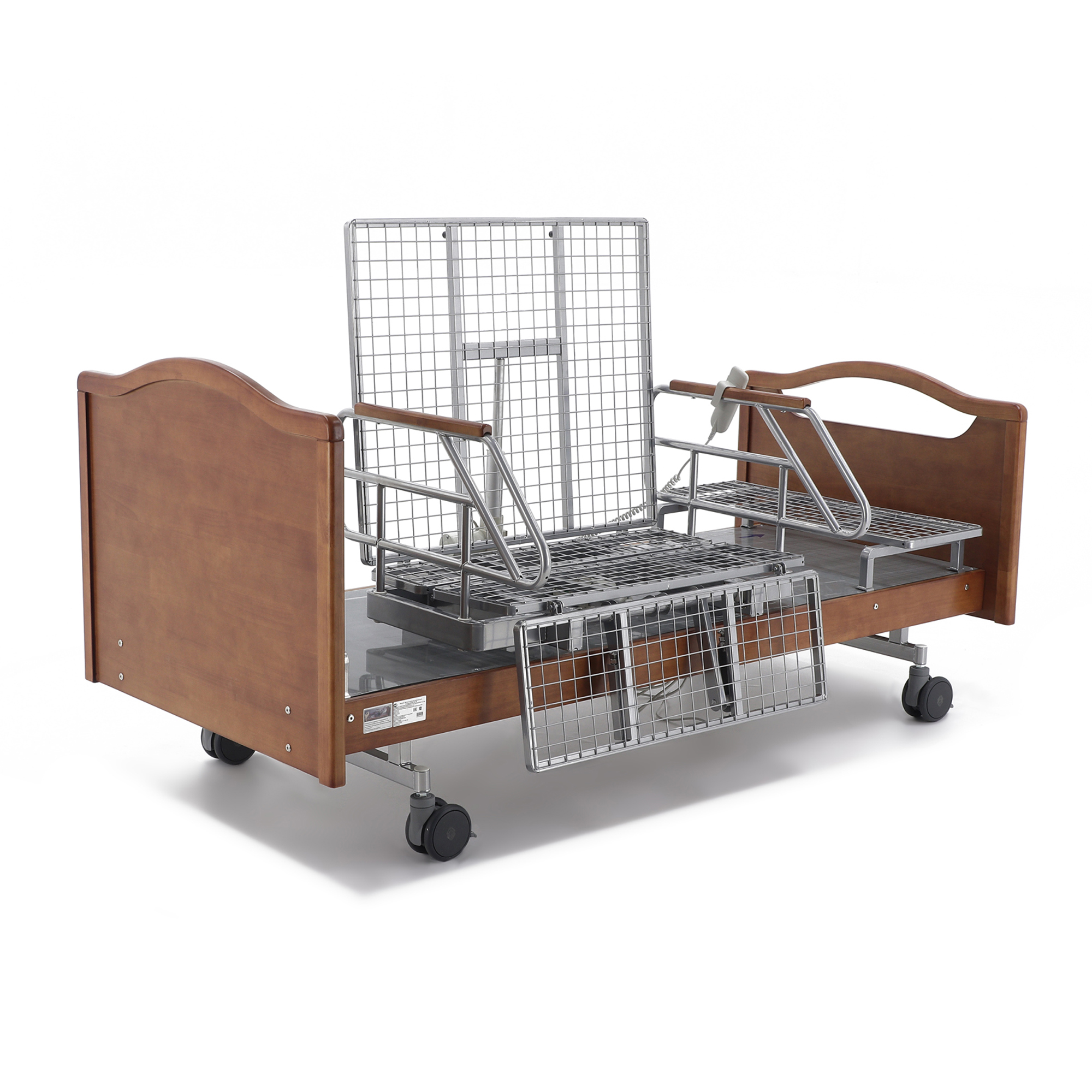Одно из главных достоинств этой модели — удобное электрическое управление тремя секциями. Медицинский персонал или сам пациент с помощью пульта могут быстро изменить конфигурацию ложа под конкретную задачу: отдых, прием пищи, проведение процедур, осмотр или посадку. Это особенно важно в отделениях длительного ухода и в домашних условиях, где приходится часто подстраивать положение кровати под состояние человека в течение дня.