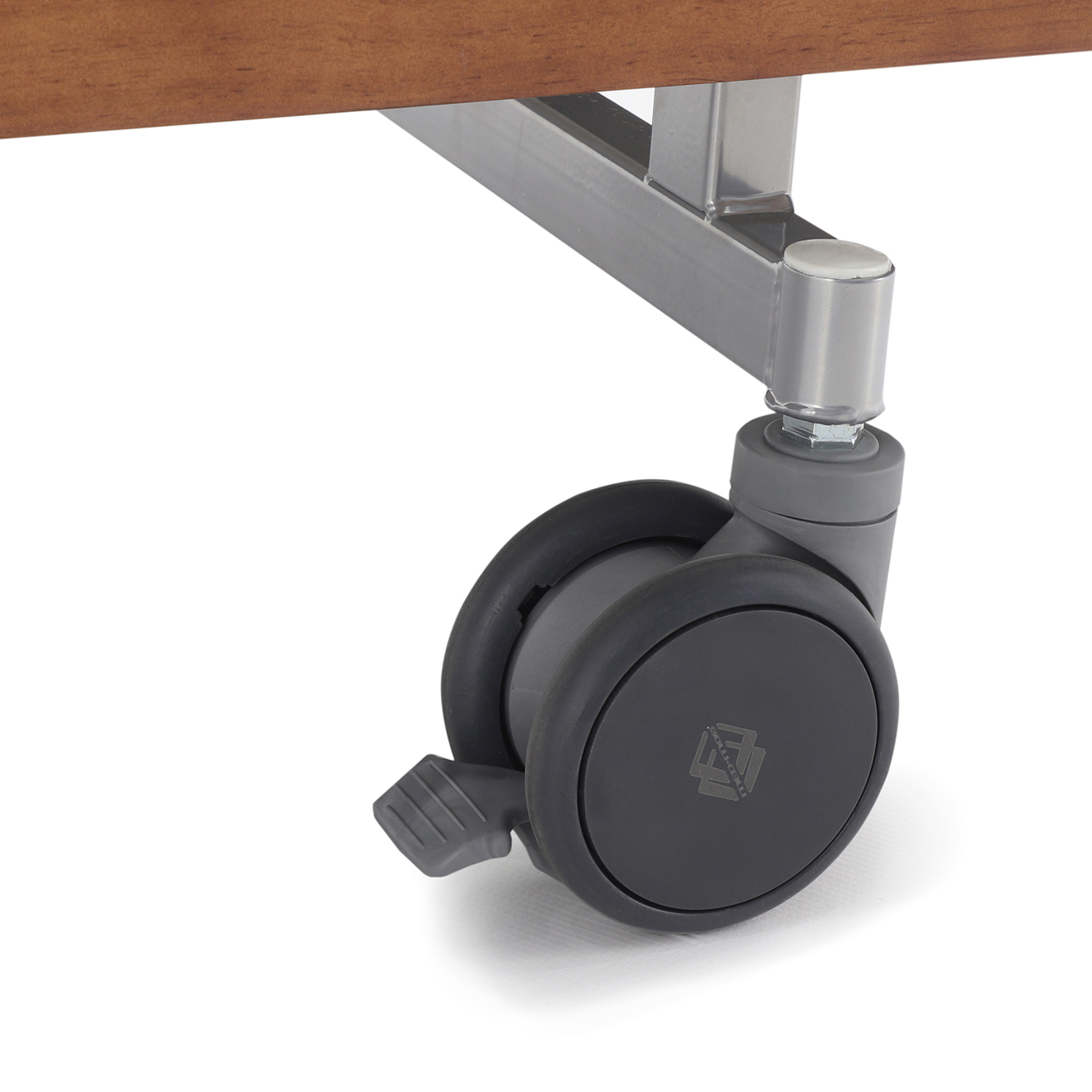 Кровать установлена на четыре двойных колеса с полиуретановыми шинами, которые не оставляют заметных следов на напольных покрытиях и подходят для ежедневного перемещения по палатам, кабинетам и домашним помещениям. Каждое колесо оснащено индивидуальным тормозом, что позволяет надежно фиксировать кровать в нужной точке.