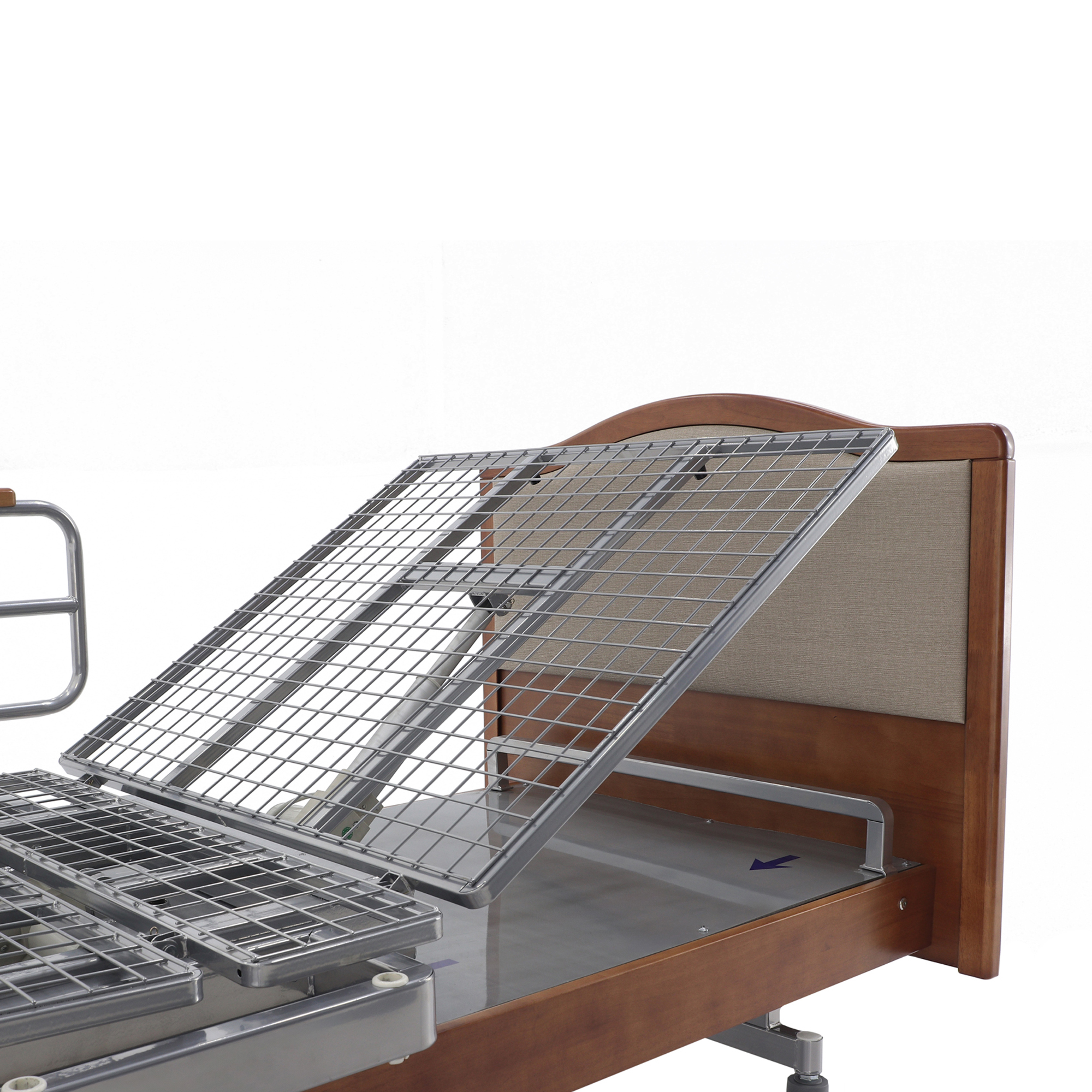 Конструкция позволяет плавно перевести пользователя из положения лежа в положение сидя. При этом отрицательный наклон икроножной секции способствует более физиологичной посадке и снижает необходимость активного участия ног пациента. Такое решение особенно актуально после операций, при неврологических нарушениях, в период восстановления после травм, а также при уходе за ожилыми людьми, которым трудно самостоятельно менять положение тела.