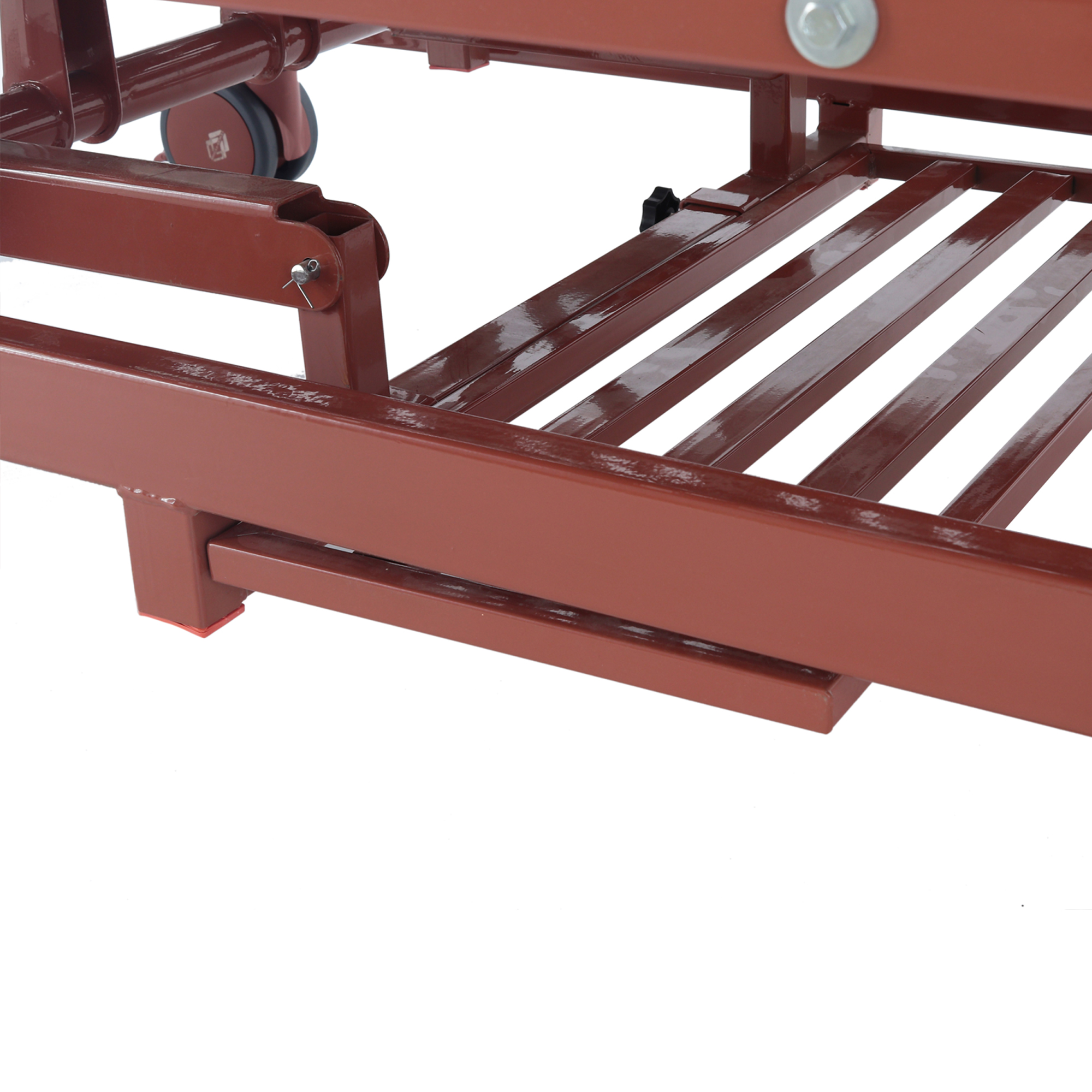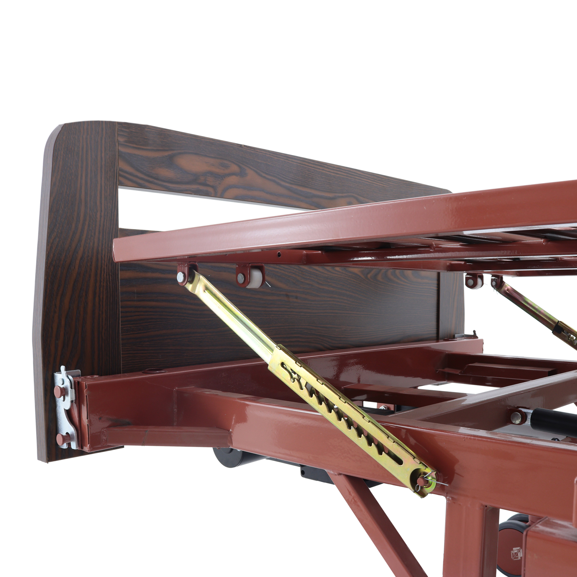 Каркас выполнен из высокопрочной стали и защищен ударопрочной эпоксидной эмалью — это важно для медицинской эксплуатации, где неизбежны регулярная санитарная обработка и контакт с оборудованием. Ложе — стальной каркас с перфорированными ламелями, которые поддерживают матрас без выраженного «провисания» и обеспечивают вентиляцию, уменьшая накопление влаги под матрасом.