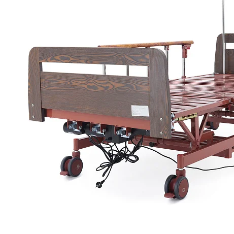 Читать полностью >Электрическая медицинская кровать Med‑Mos DB‑6 (ЛДСП коричневый) — функциональная модель для палат стационара, отделений ухода, реабилитационных центров и домашнего использования, когда важны комфорт пациента и удобство персонала. Здесь продумано всё: безопасная регулировка секций, широкий диапазон высоты ложа, удлинение для высоких пациентов, складные ограждения и надежное резервное питание. Коричневые спинки из ЛДСП выглядят аккуратно и «по‑домашнему», поэтому кровать уместна не только в клинике, но и в комнате длительного ухода.