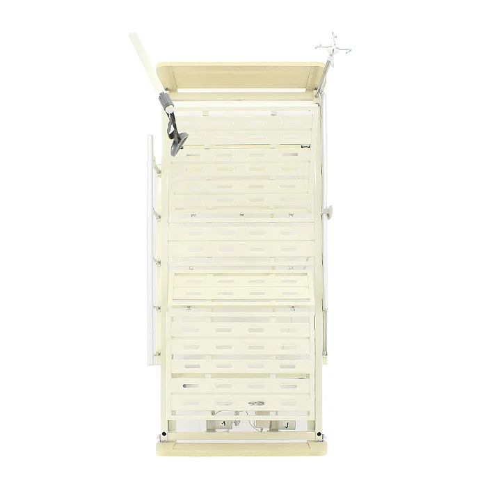 Спинки из ЛДСП в оттенке «светлое дерево» заметно смягчают восприятие медицинского изделия. Кровать выглядит уместно не только в палате, но и в домашней комнате, кабинете реабилитации, частном медцентре. Быстросъемные спинки с фиксаторами упрощают обслуживание и доступ при транспортировке.