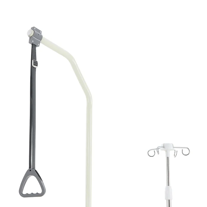 Для ухода важна каждая мелочь: кровать оснащена четырьмя крючками для мочеприемников, а также комплектуется дугой для подтягивания с ремнем и удобной треугольной ручкой, что помогает пациенту активнее участвовать в смене положения тела.