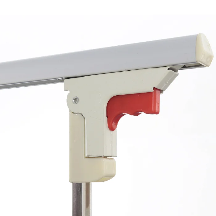 Складные боковые ограждения обеспечивают безопасность пациента во время отдыха, сна и проведения манипуляций. При необходимости они быстро опускаются, облегчая доступ персонала к больному. Механизм фиксации продуман так, чтобы ограждения надежно удерживались в рабочем положении и не создавали ощущения хрупкости или ненадежности.