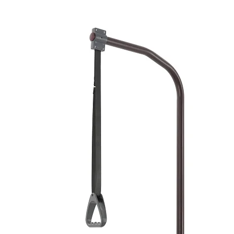 Два складных боковых ограждения изготовлены из профильных труб с металлическим покрытием и пластиковыми заглушками; поручни — из алюминиевого сплава с декоративной пленкой. Ограждения фиксируются в верхнем положении надежным механизмом, а складывание выполняется с понятной кнопкой — доступ к пациенту становится быстрее, при этом безопасность не «провисает».