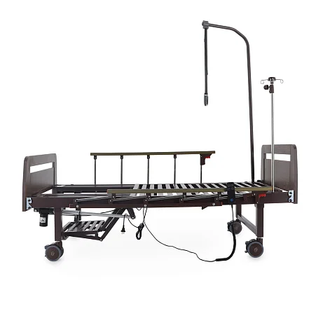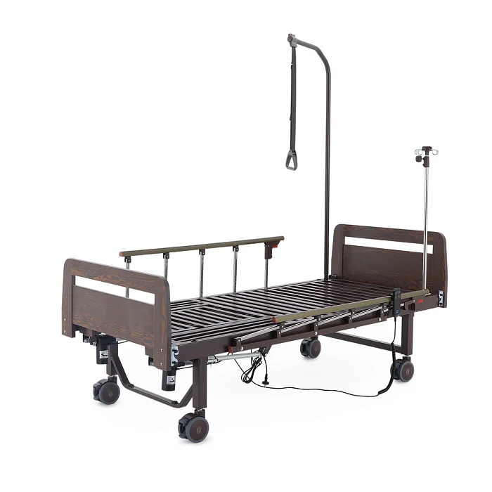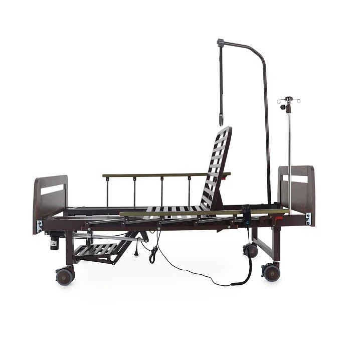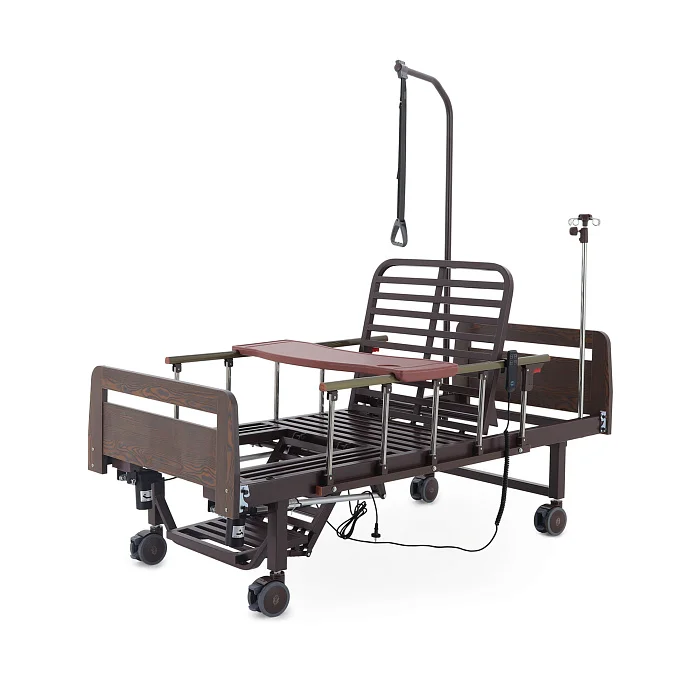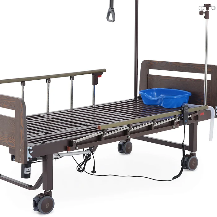 Практичная функция «кардиокресло» помогает быстро организовать комфортное сидячее положение: ножные секции опускаются ниже уровня основного ложа, что особенно удобно при кормлении, общении или длительном пребывании в палате. Отделка из ЛДСП венге выглядит аккуратно и уместно в интерьере медицинского учреждения, а отсутствие туалетного устройства делает модель рациональным выбором для отделений, где нужен надежный базовый функционал с акцентом на безопасность и эргономику.