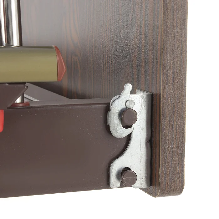 Торцевые спинки выполнены с отделкой ЛДСП «венге». Крепление — на быстросъемных фиксаторах, с пластиковыми угловыми элементами. Отдельно стоит отметить карман из прозрачного пластика под карточку пациента — полезно в стационаре и удобно в домашнем уходе, когда нужно держать информацию «на виду».