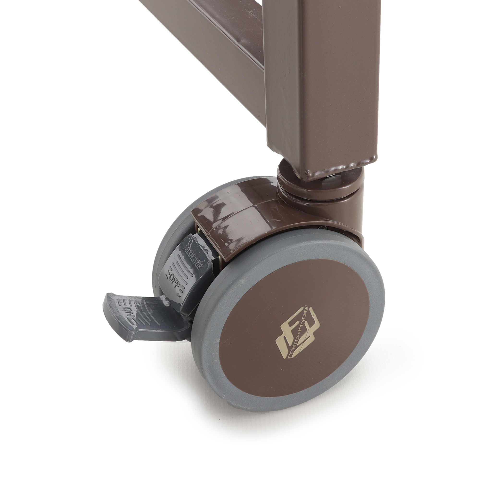 Складные боковые ограждения добавляют уверенности при поворотах и смене положения, а индивидуальные тормоза на каждом колесе позволяют надёжно зафиксировать кровать во время процедур, ухода и пересаживания.