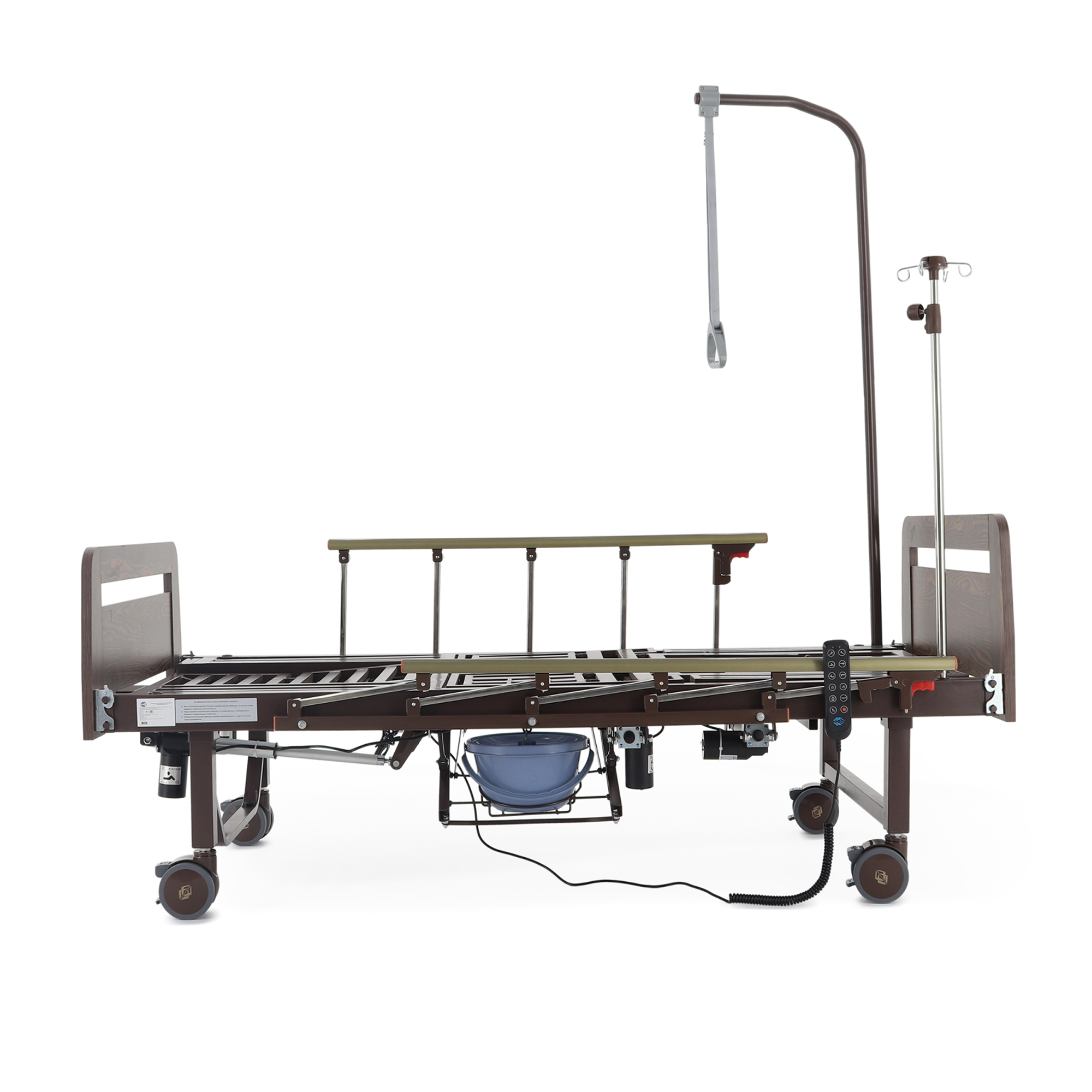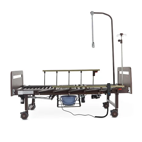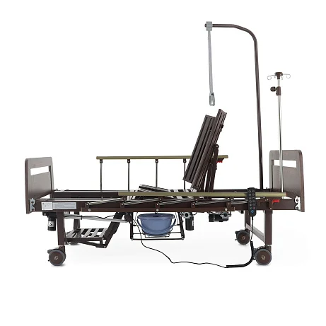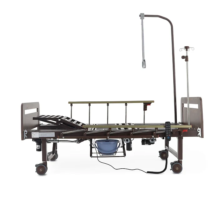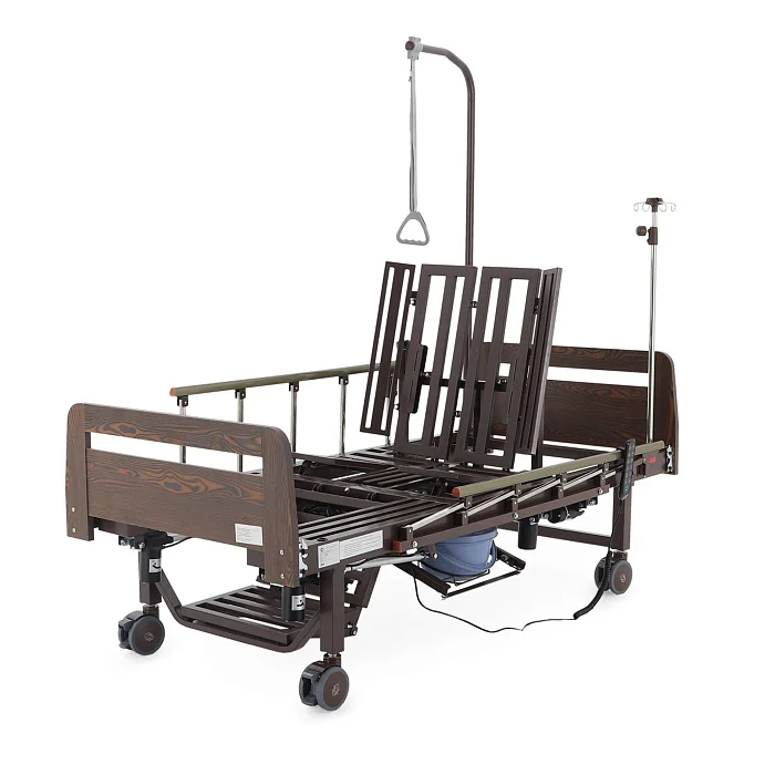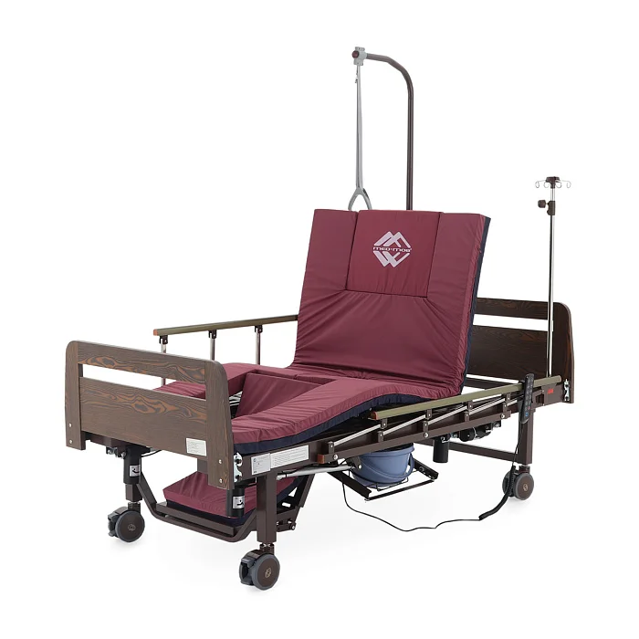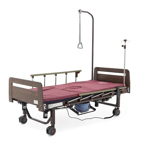 Читать полностью >Электрическая функциональная кровать Med‑Mos YG‑3 (ЛДСП венге) — это продуманное «рабочее место» для ухода, где комфорт пациента и удобство персонала собраны в одной конструкции. Модель подходит для домашнего использования и для палат, где важны безопасность, быстрые переводы в нужные положения и гигиенические решения без лишних перемещений. Здесь всё нацелено на практику: боковое переворачивание, противопролежневый режим, встроенное туалетное устройство, положение «кардиокресло», а также комплект аксессуаров, который закрывает базовые задачи ухода с первого дня.
