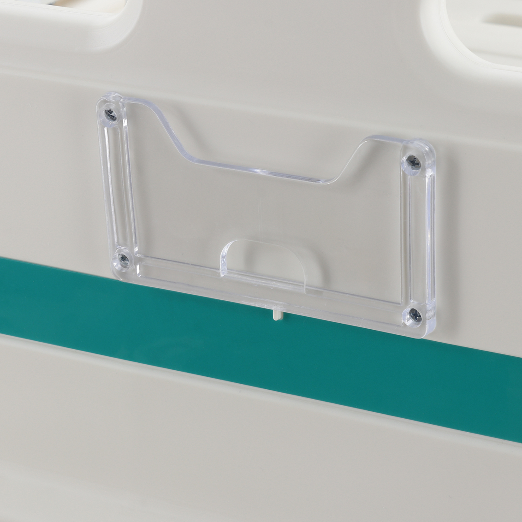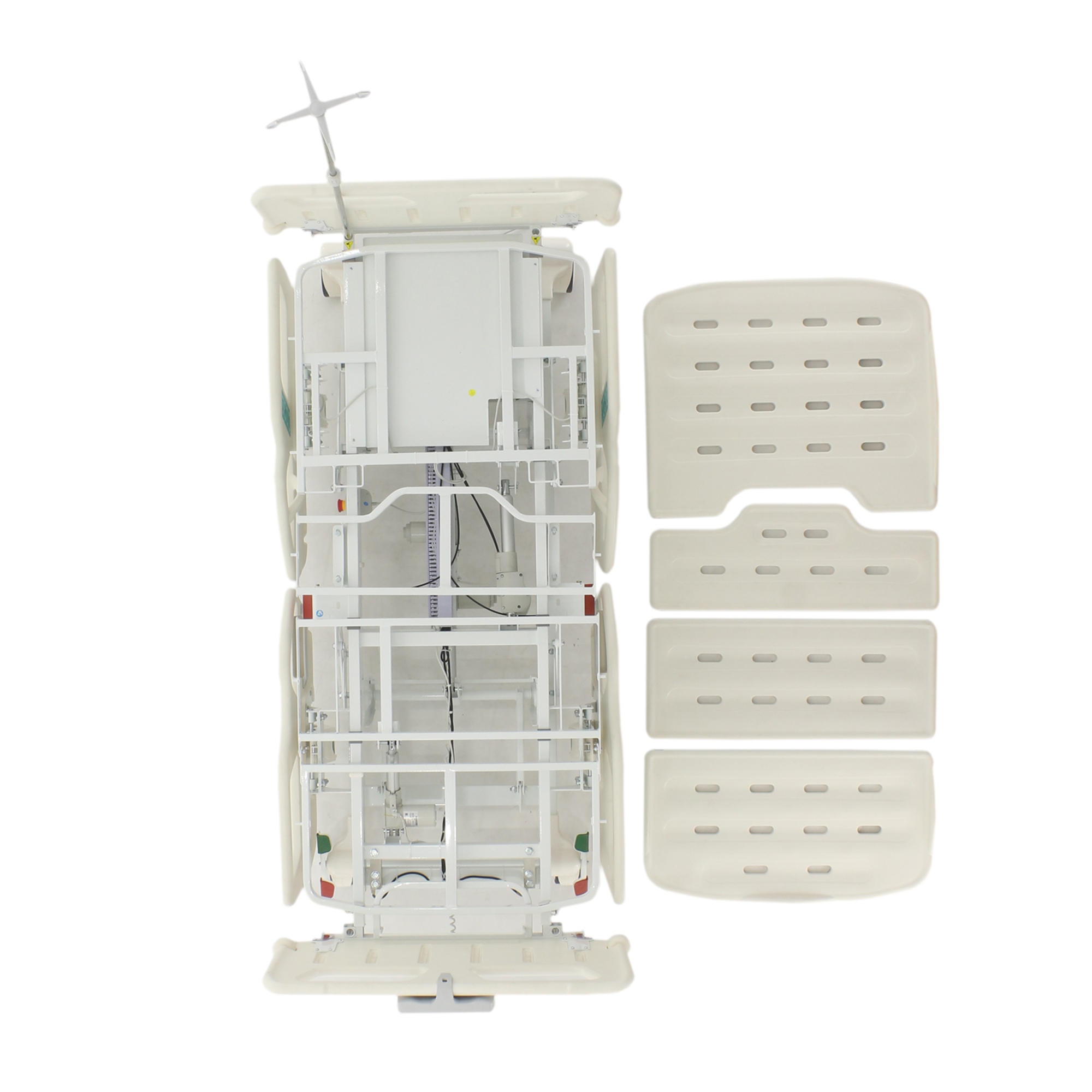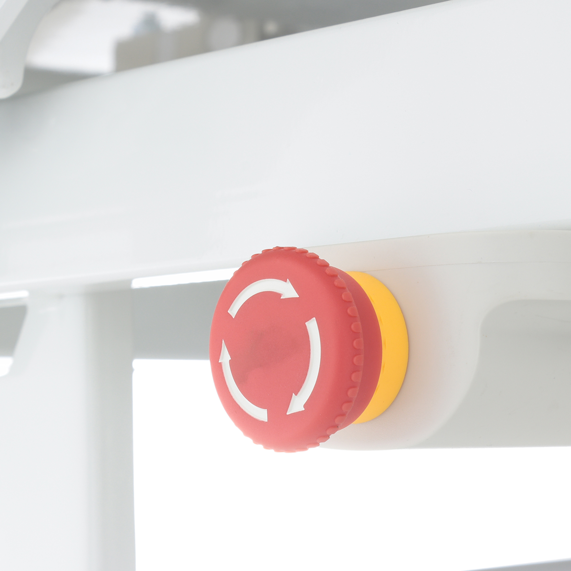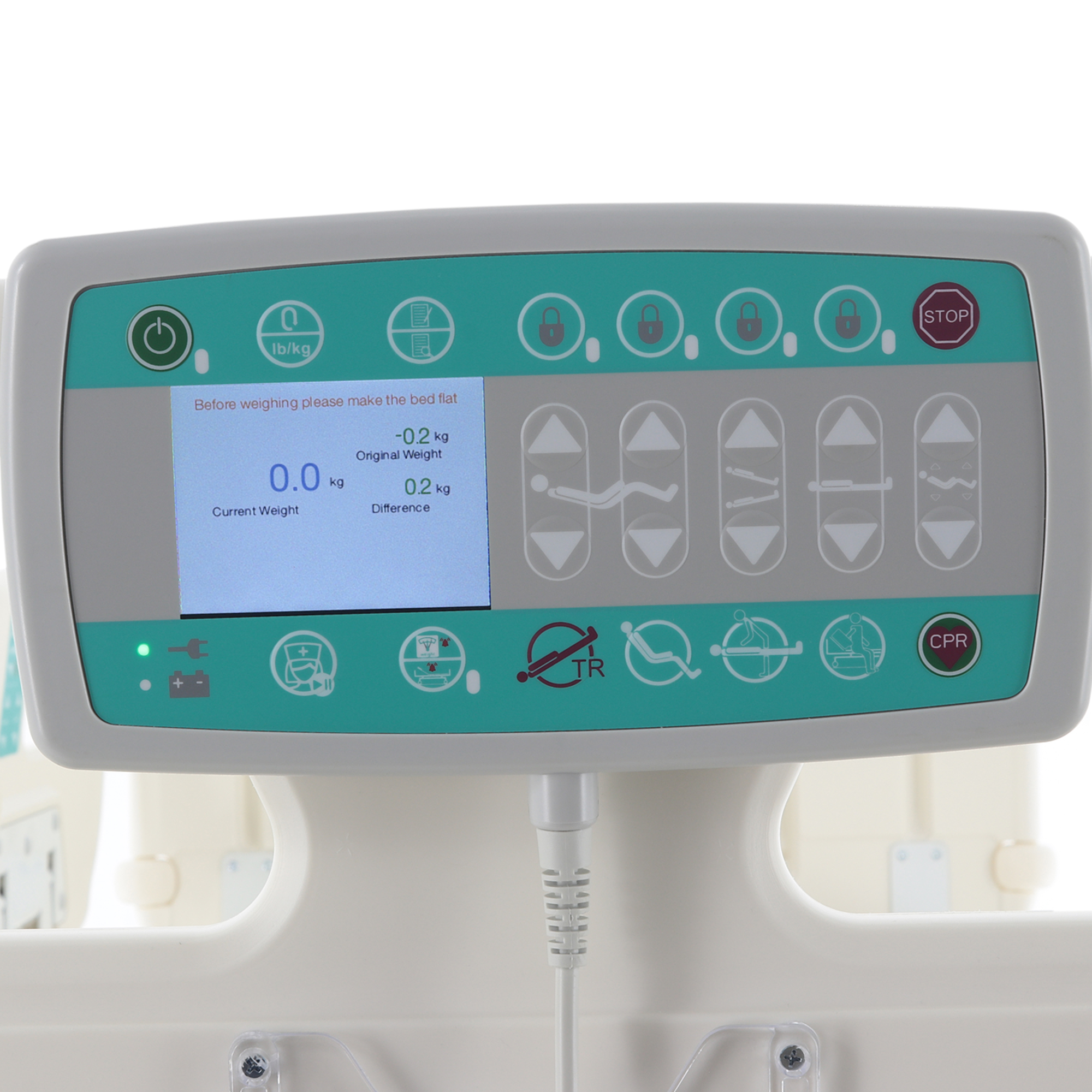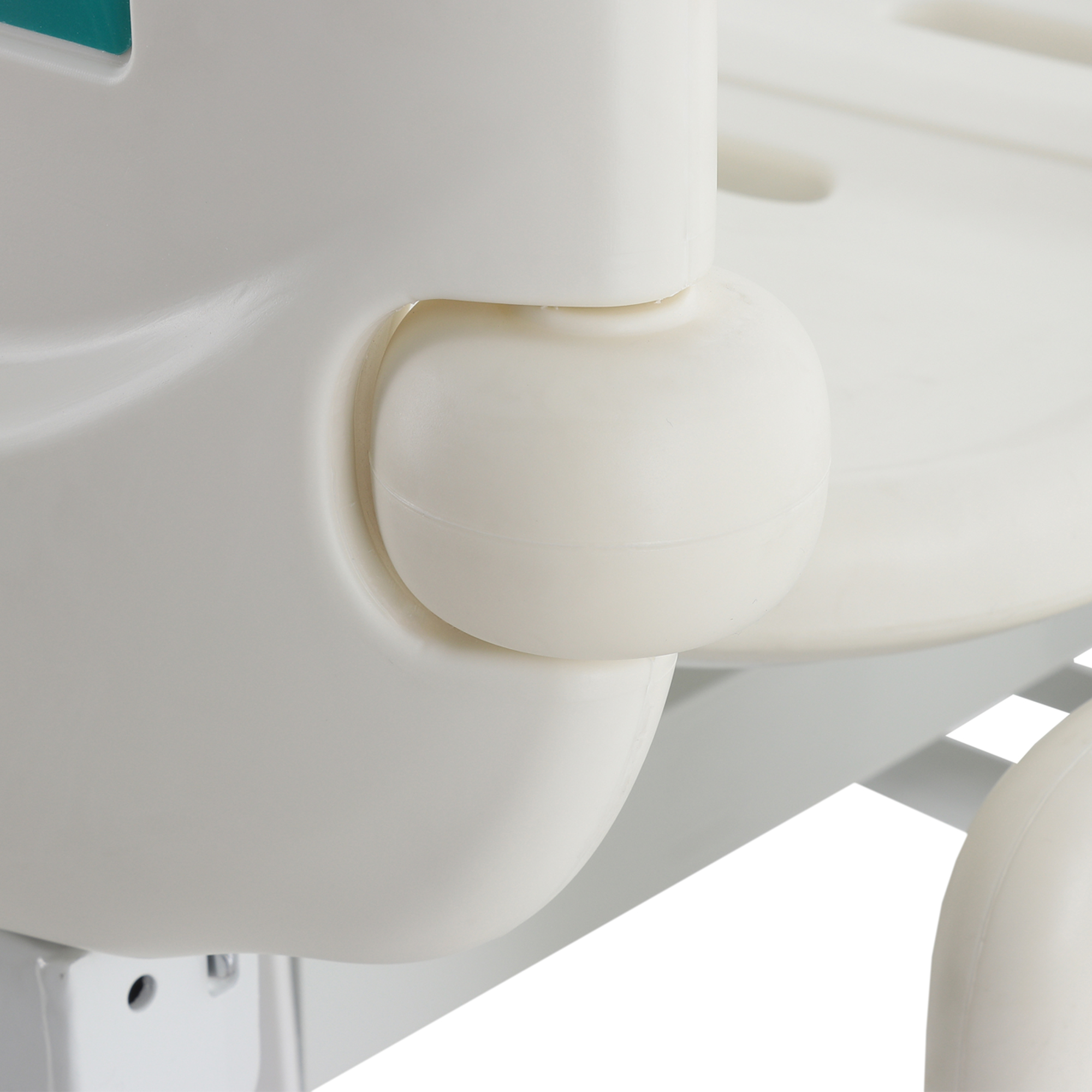 Четыре боковых ограждения оснащены откидным механизмом с газовыми упорами, благодаря чему опускание и подъем выполняются плавно, без резких движений. В верхнем положении срабатывает автоматическая фиксация, что снижает вероятность случайного складывания. Встроенные угломеры помогают визуально контролировать положение секций, а влагозащищенные панели управления сохраняют работоспособность в условиях интенсивной клинической эксплуатации.