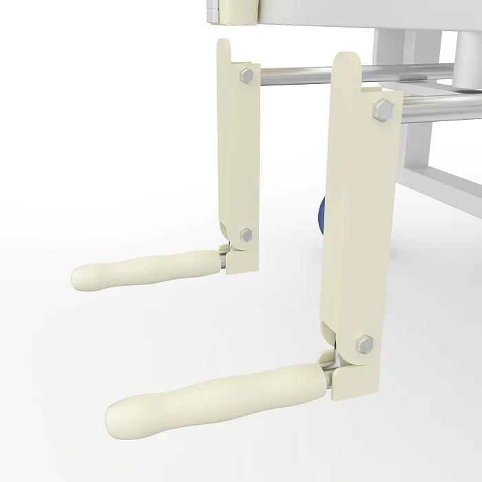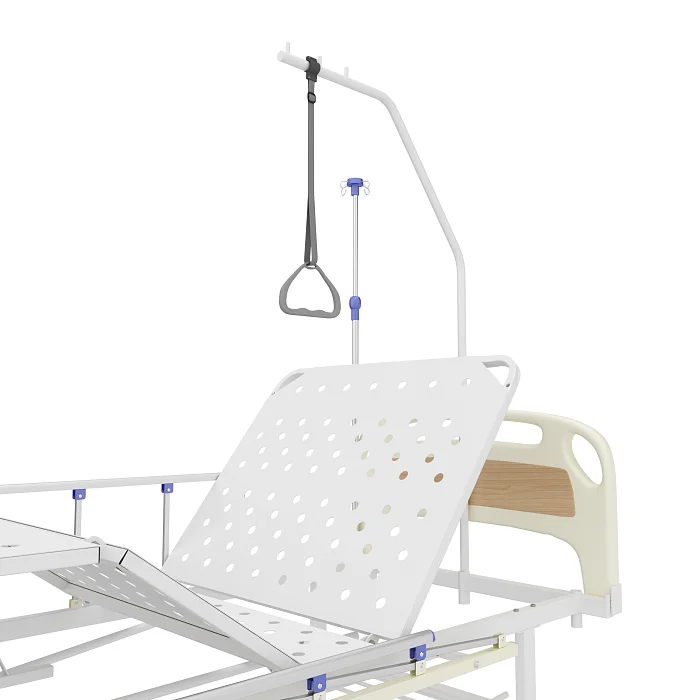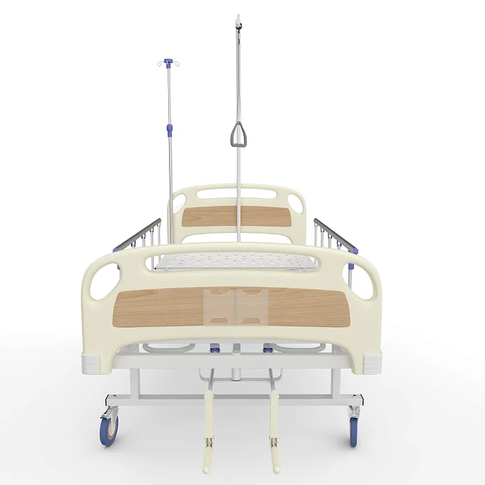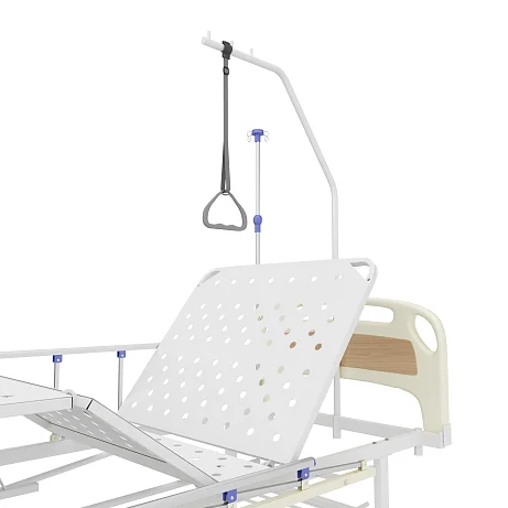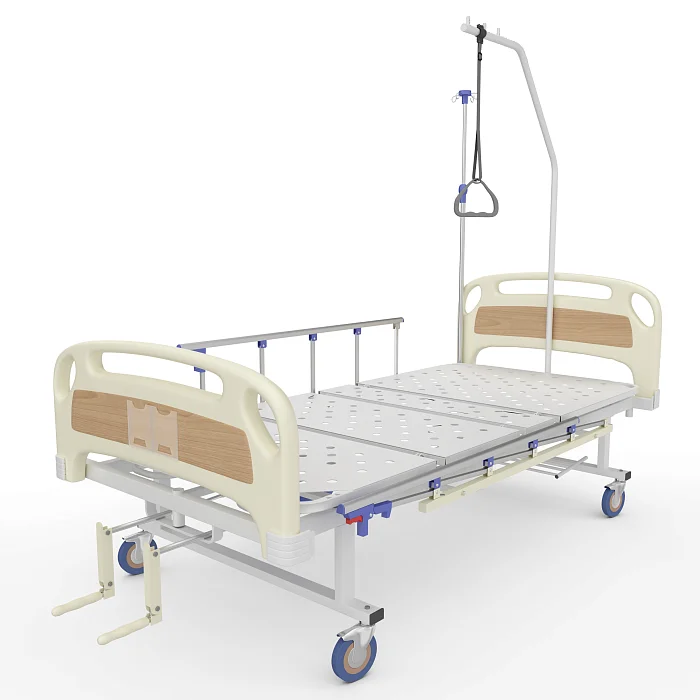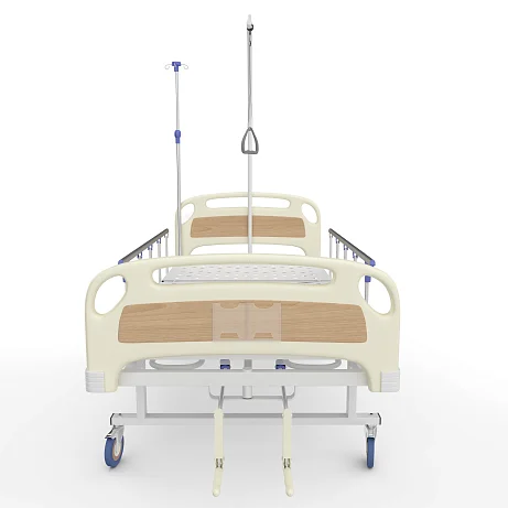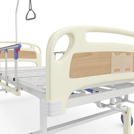 Кровать снабжена двумя боковыми ограждениями и противотравматическими бамперами, что обеспечивает безопасность при использовании. Благодаря прочной конструкции и максимальной нагрузке до 230 кг, она надежна и долговечна. В комплектацию входят все необходимые аксессуары: инфузионная стойка, поддерживающая ручка и удобные резиновые колеса диаметром 125 мм для легкого перемещения.