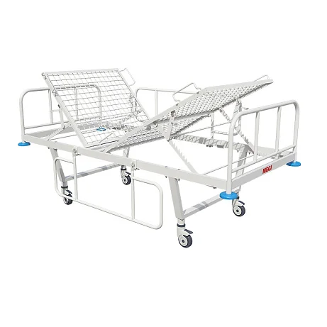 Медицинская кровать предназначена для ухода за лежачими больными в стационарах медицинских учреждений. Состоит из стального каркаса, покрытого эпоксидно-порошковой краской белого цвета, и ложа из сварной сетки. Ложе четырехсекционное, каждая секция регулируется с помощью ступенчатой рейки. Кровать установлена на четыре колеса. Поставляется только в разобранном виде. Магазин МедМебель в Москве предлагает купить такую медицинскую кровать для лежачих больных недорого и с доставкой по указанному адресу.