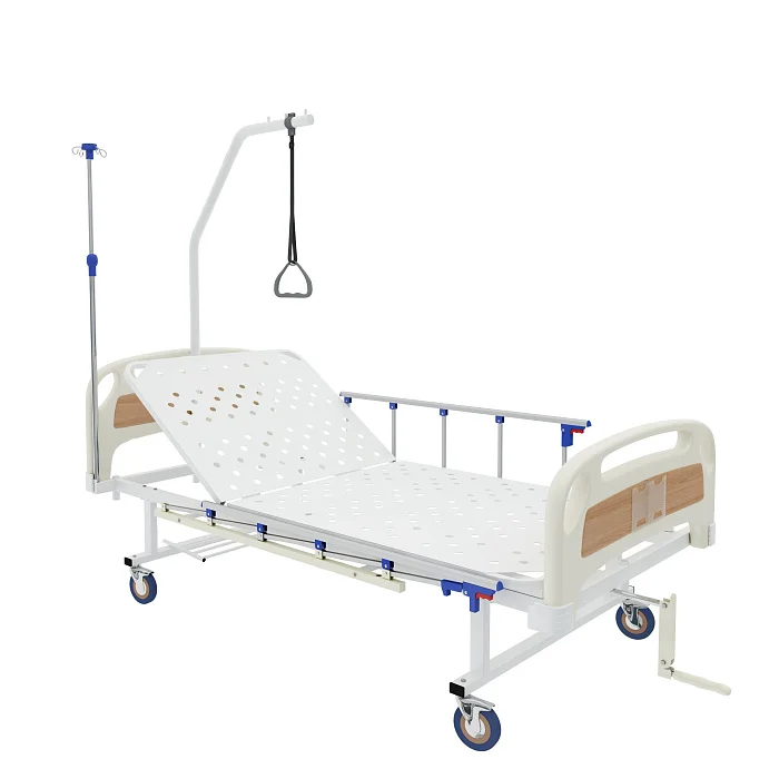 Идеальное решение для эксплуатации в лечебно-оздоровительных учреждениях, а также для домашней реабилитации больных с ограниченной подвижностью. Эта двухсекционная кровать имеет винтовой привод и оснащена перфорированным ложем, обеспечивая надежную поддержку и комфорт во время лежания. Размеры кровати составляют 2145 х 950 мм, а также предусмотрены два боковых складных ограждения для дополнительной безопасности. Угол наклона спинной секции достигает 80°, что позволяет подобрать наиболее удобное положение для пользователя. Кровать также оснащена съемными пластиковыми торцами, противотравматическими бамперами и надежным педальным тормозом. В комплекте есть инфузионная стойка и стойка для подтягивания, что делает эту кровать не только удобной, но и функциональной, с безопасной рабочей нагрузкой до 230 кг.