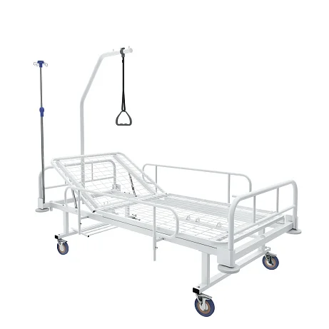 С конструкцией, способной выдерживать нагрузку до 230 кг, эта кровать сочетает в себе прочность и удобство. Высота кровати 925 мм, а угол наклона спинки регулируется от 0 до 80°. В комплект входят инфузионная стойка и стойка для подтягивания, что делает этот продукт идеальным выбором для реабилитации и ухода за больными.