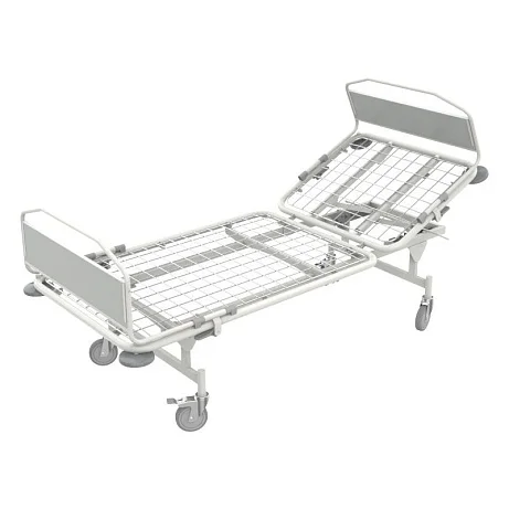 Кровать оснащена одной подвижной секцией — головной. Регулировка выполняется с помощью ступенчатой рейки («гребенки»), что ценят в больничных условиях: механизм простой, ремонтопригодный и не требует питания или сложной настройки. Угол наклона головной секции — от 0° до 75°, что позволяет подобрать положение для отдыха, приема пищи, осмотра, снижения застойных явлений и облегчения дыхания по назначению врача.