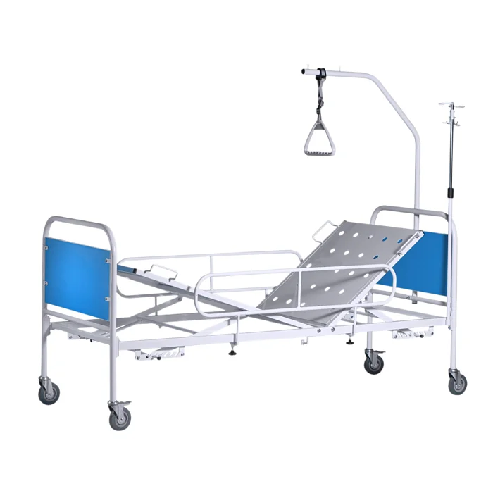 Читать полностью >Кровать медицинская функциональная двухсекционная с механическим регулированием углов наклона секций КМФ2-01 Ока-Медик - колеса d. 125, 2 колеса с тормозом, спинки со вставками из ЛДСП, ложе - перфорированный лист.