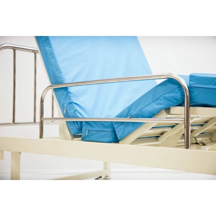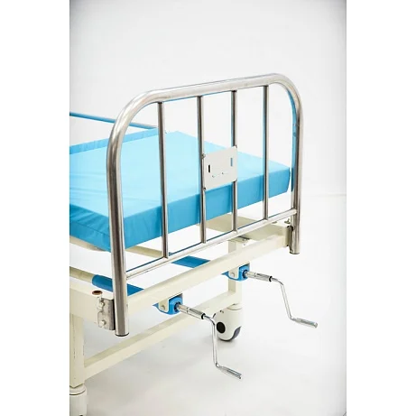 Читать полностью >Кровать MET DM-300 c рамой Балканского предназначена для использования в стационарных отделениях, отделениях неотложной помощи, отделениях интенсивной терапии, родильных отделениях, а также для ухода за больными в домашних условиях.Каркас изготовлен из профильных стальных труб, покрытых полимерно-порошковой эмалью. Спинки съемные — из нержавеющей стали, прикреплены к раме кровати жестким болтовым соединением, имеется кардхолдер.Ложе представляет собой стальные ламели (рейки) с покрытием полимерно-порошковой эмалью. Регулировки секций осуществляются с помощью двух механических автономных винтовых приводов.