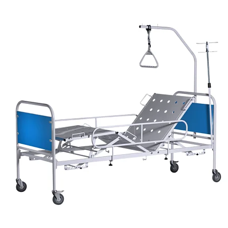 Читать полностью >Кровать медицинская функциональная трехсекционная с механическим регулированием углов наклона секций КМФ3-01 Ока-Медик - колеса d. 125, 2 колеса с тормозом, спинки со вставками из ЛДСП, ложе-перфорированный лист