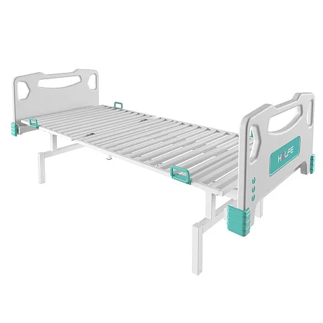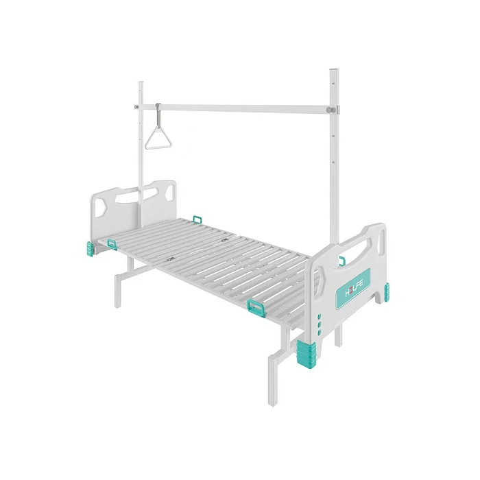 Медицинская кровать MB200.1.0.5 (КМ‑06) Промет Hilfe для ухода, диагностики, лечения и наблюдения в стационарах. Односекционное металлическое реечное ложе 2000×900 мм. Каркас из профильной трубы с эпоксидно‑порошковым покрытием. Быстросъёмные спинки из ударопрочного износостойкого пластика со скруглёнными краями, защитные пластиковые бамперы. Поставляется в разобранном виде, упаковка — гофрокартон.