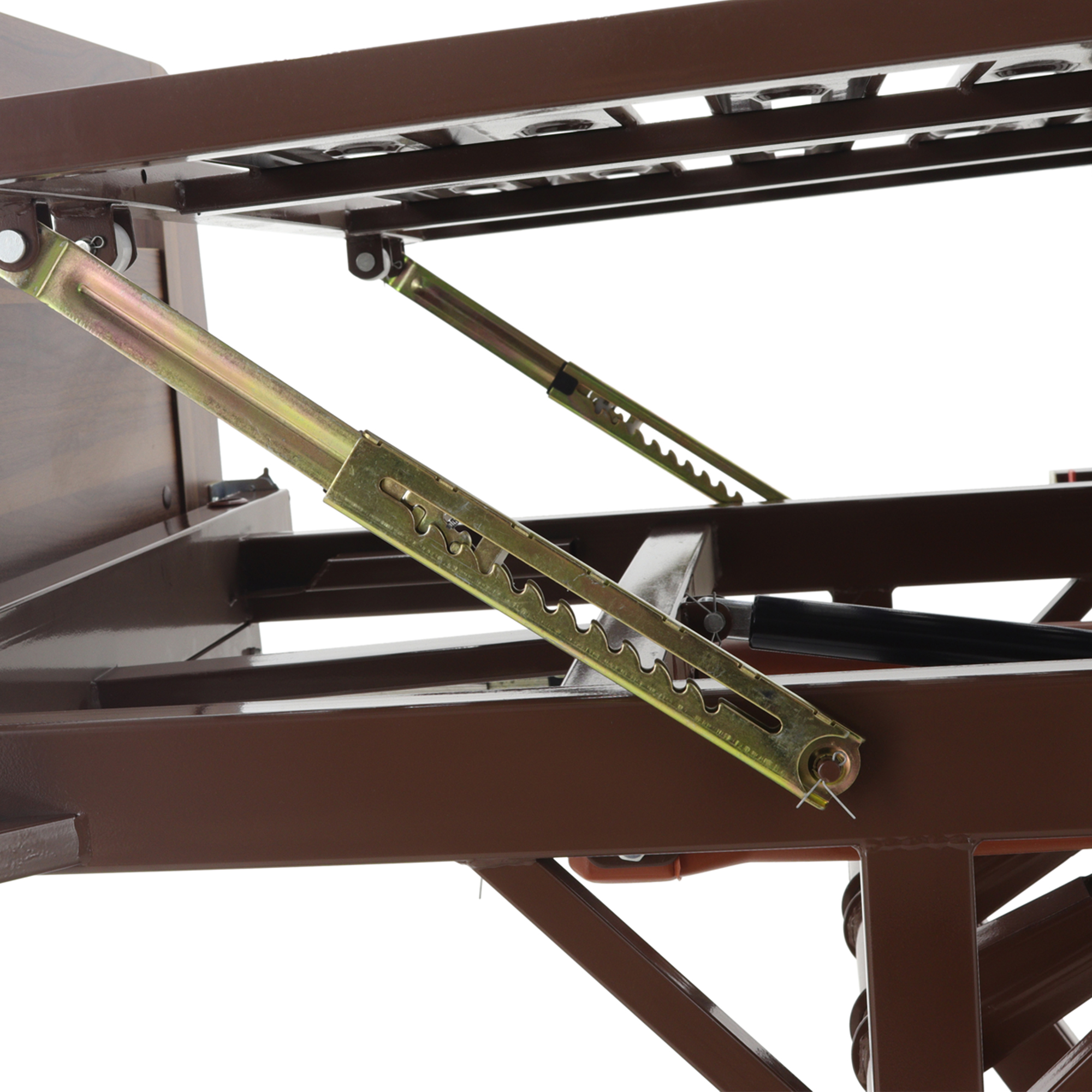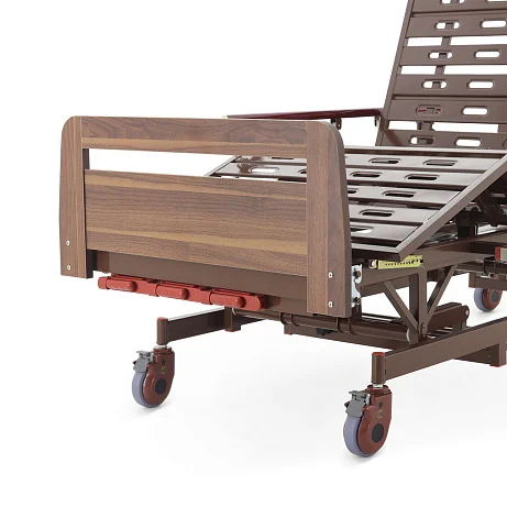 Основа кровати выполнена на прочном двойном подвижном каркасе, рассчитанном на регулярную нагрузку и длительную эксплуатацию. Отделка из коричневого ЛДСП делает внешний вид аккуратным и спокойным, благодаря чему кровать уместно смотрится не только в палате, но и в домашней комнате.