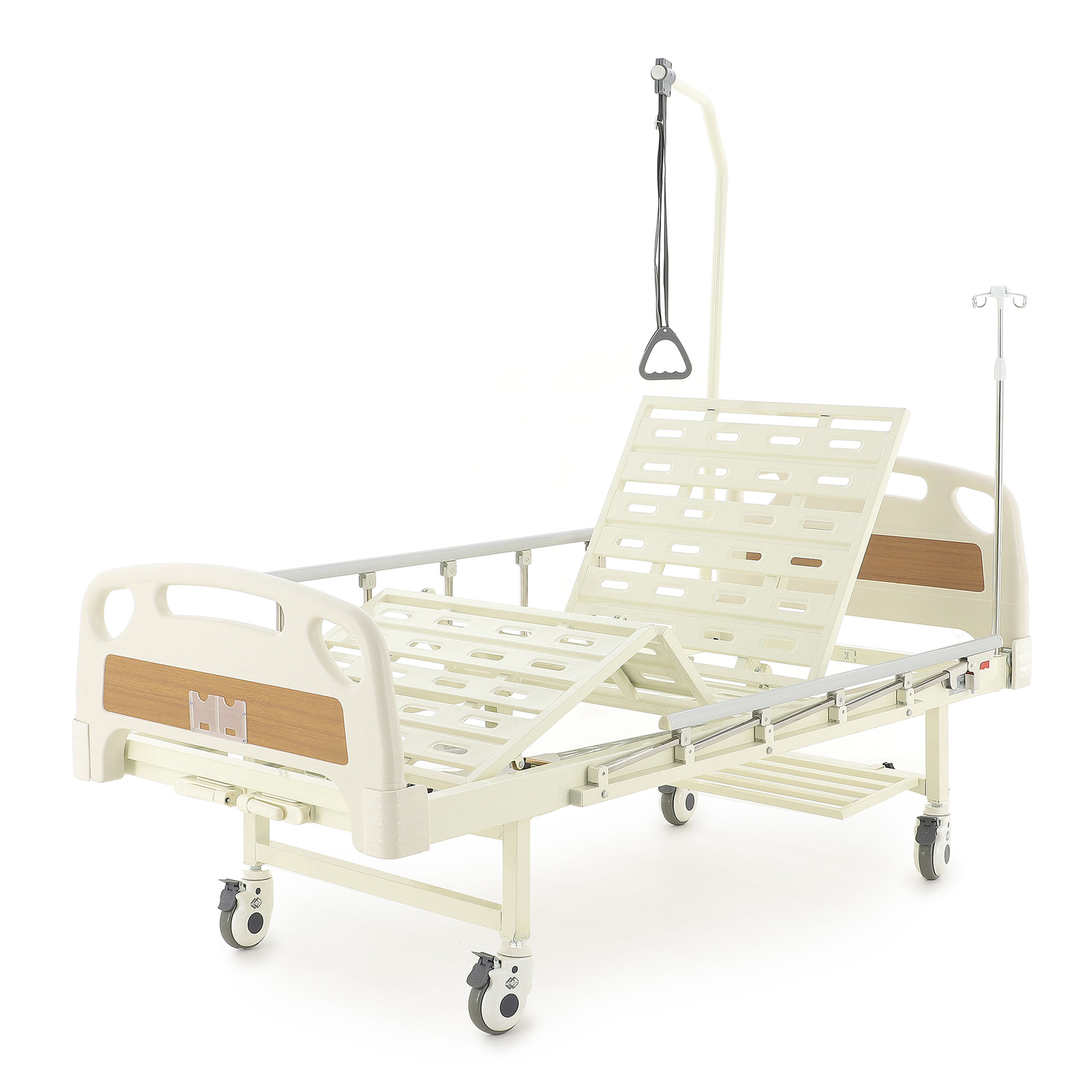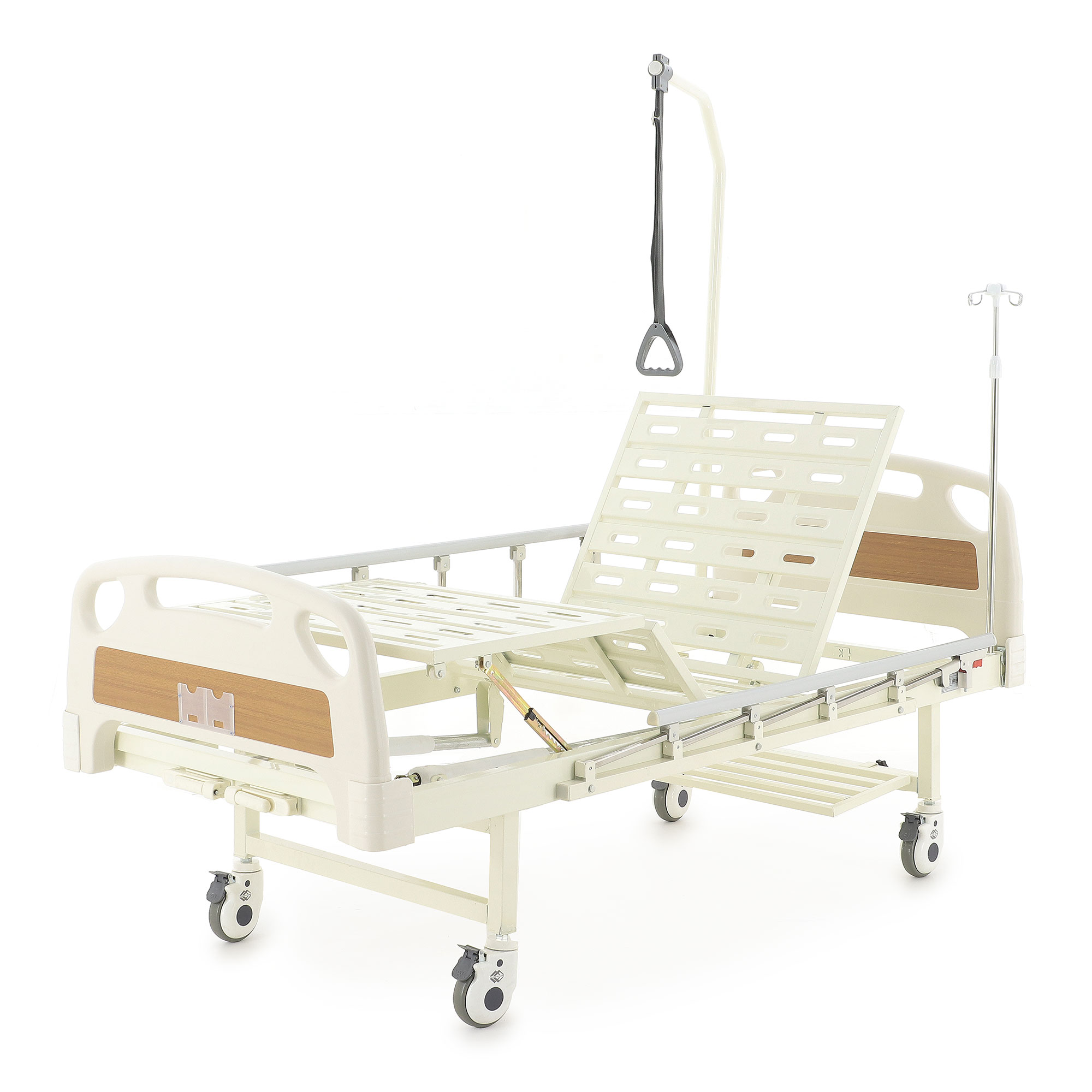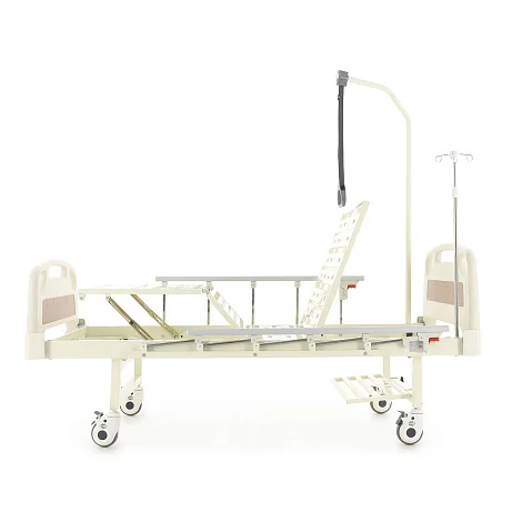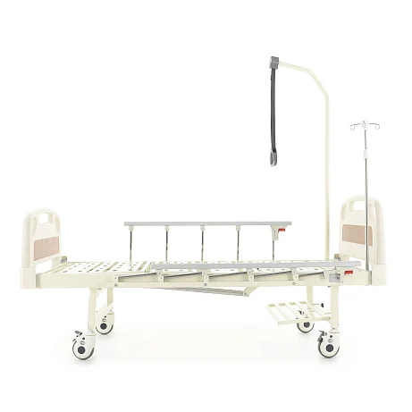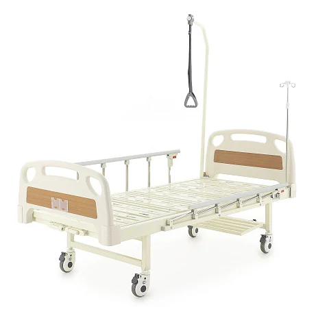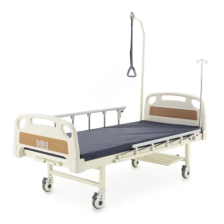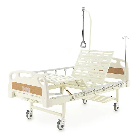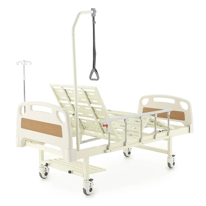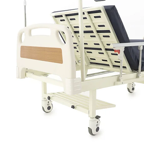 Ложе разделено на секции, положение которых регулируется механически — можно быстро подобрать более удобную позу для отдыха, чтения или проведения процедур. Кровать помогает организовать спокойный и аккуратный уход, делая перемещение и размещение пациента более простым и безопасным.