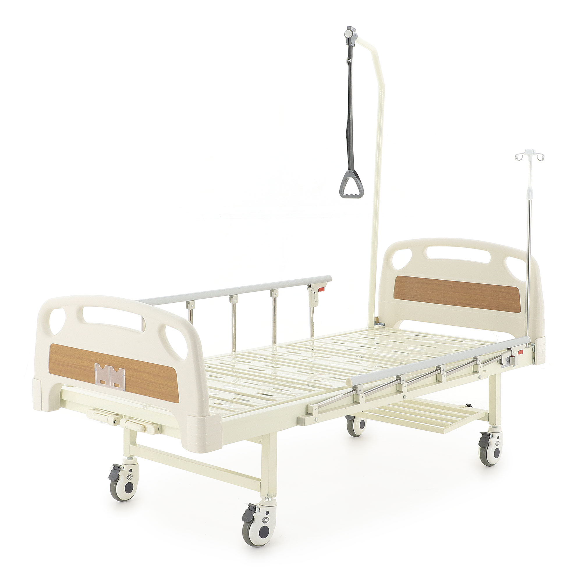 Съемные изголовье и изножье из ABS-пластика удобны в ежедневной работе: доступ к пациенту становится проще, а уборка и обработка занимают меньше времени. Опоры обеспечивают устойчивое положение кровати на полу.