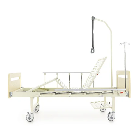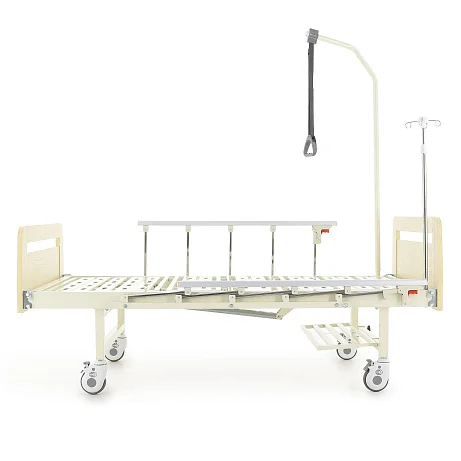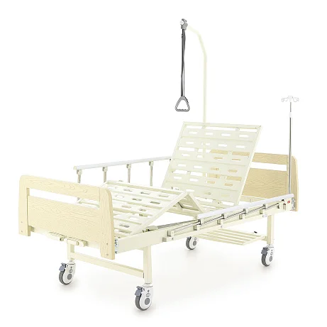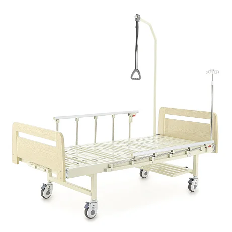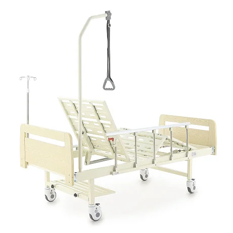 В комплект уже входит все, что обычно докупают отдельно: ложе и комплект спинок, 2 механических привода, инфузионная стойка, дуга для подтягивания, быстросъемная полка для судна, 4 крючка для мочеприемников, а также уголки для удлинения ложа на 10 см (4 шт.).