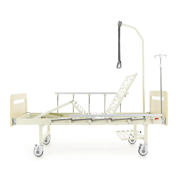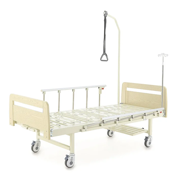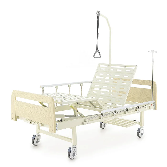 Механическая кровать Med-Mos Е-8 в отделке под светлое дерево — практичное решение для ухода дома или в медицинском учреждении, когда важны удобство пациента и простота работы для ухаживающего. Ложе разделено на 4 секции, при этом 3 из них подвижные, чтобы можно было быстро подобрать комфортное положение для отдыха, чтения или процедур.