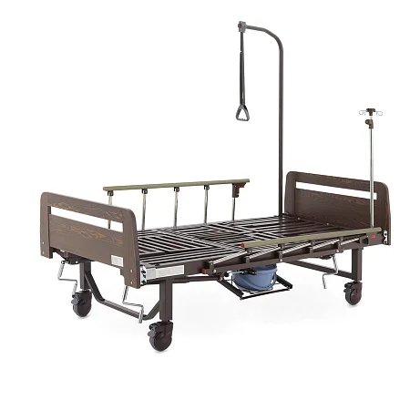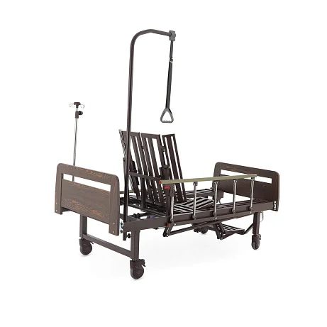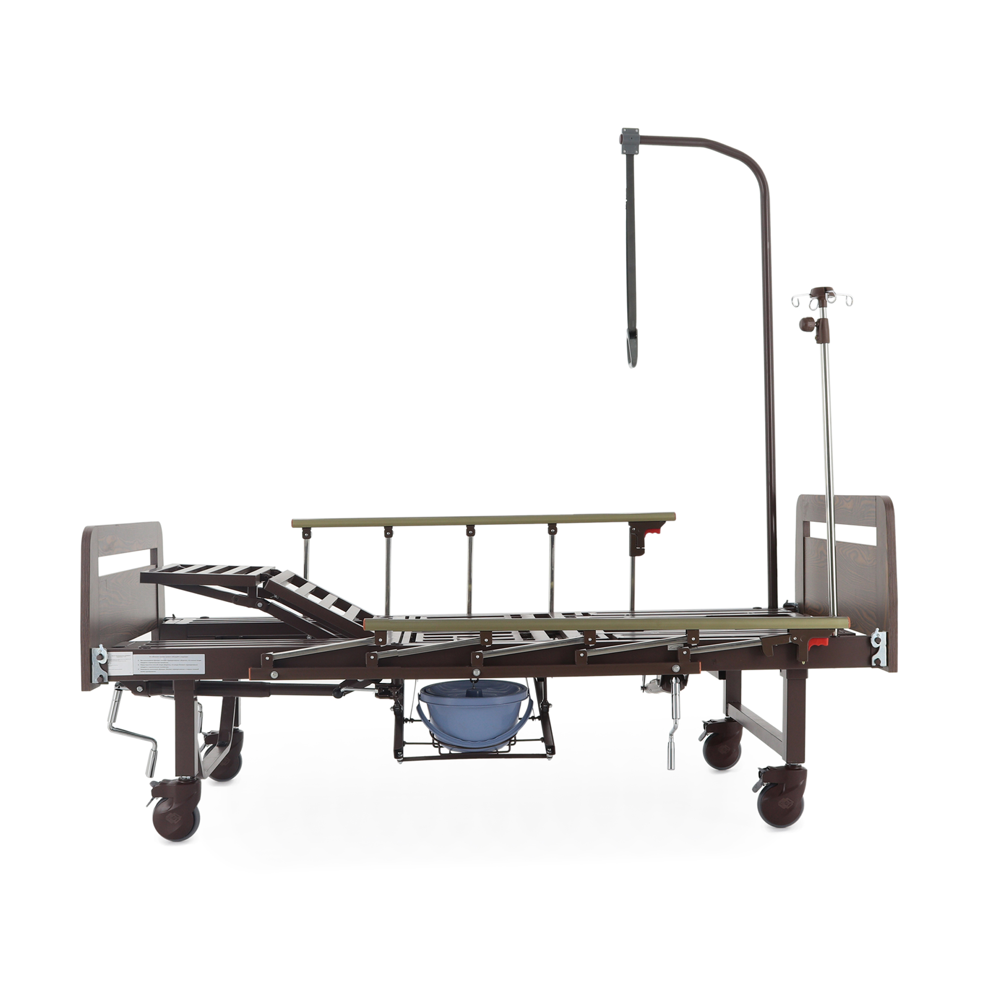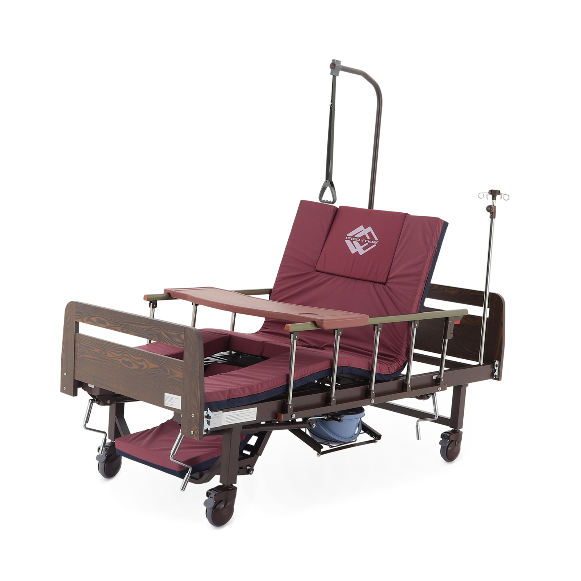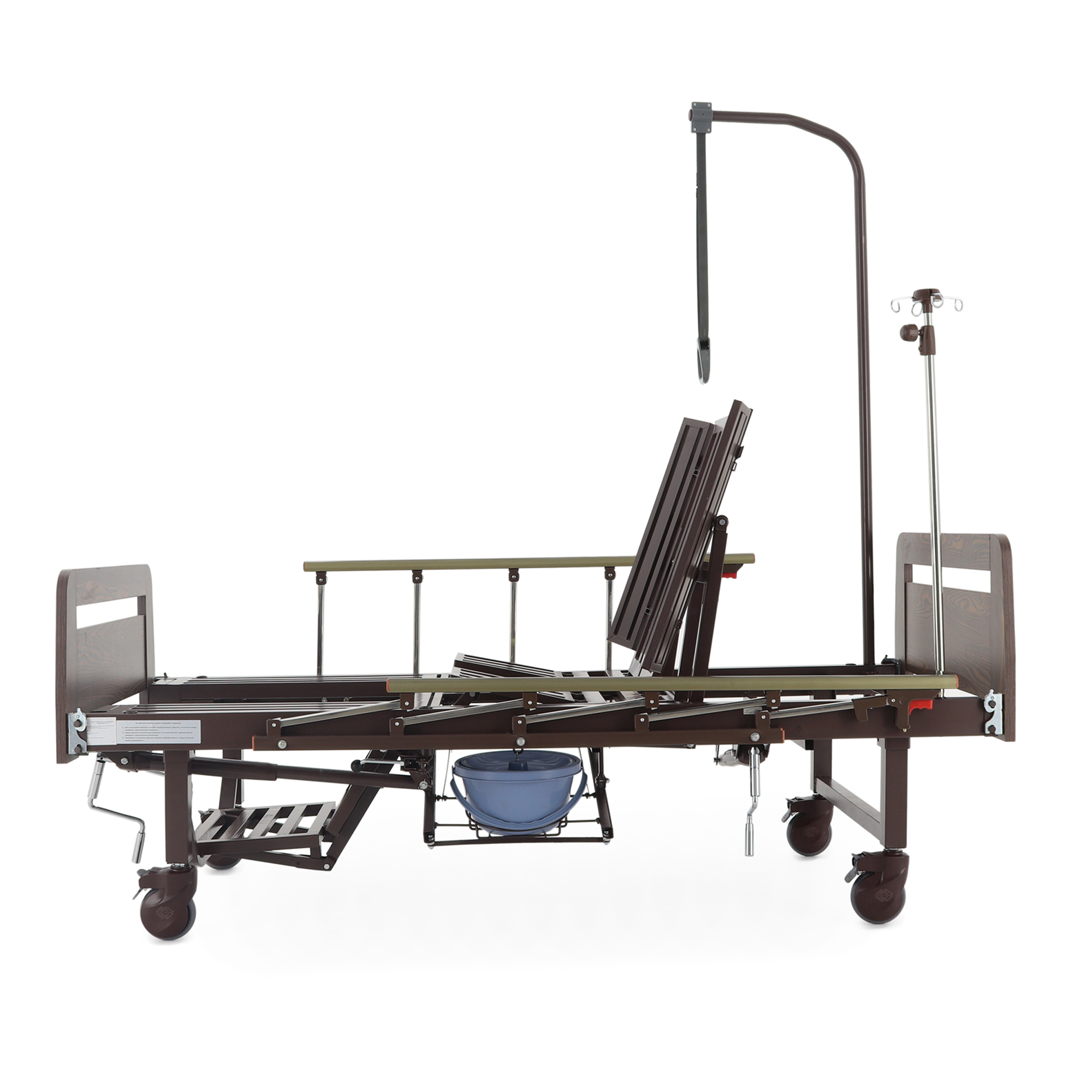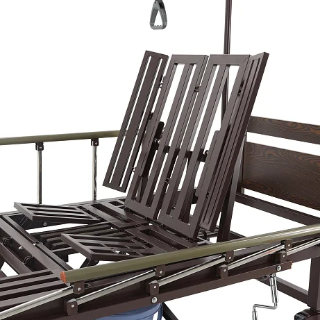 Механическая кровать Med-Mos YG-5 в исполнении ЛДСП «венге» — практичный вариант для палат, кабинетов ухода и домашней реабилитации. Кровать с боковым переворачиванием, туалетным устройством и функцией «кардиокресло» имеет 5 функций и 13 секций для комфорта пациентов, находящихся в длительном стационаре. Она помогает организовать удобное место для пациента и облегчает ежедневные процедуры: смену белья, гигиенический уход, кормление и наблюдение. Надёжная конструкция рассчитана на регулярное использование, а механическая регулировка позволяет подобрать более комфортное положение без лишней суеты. В итоге вы получаете аккуратное, функциональное решение, где продуманы и комфорт лежачего человека, и спокойствие тех, кто за ним ухаживает.