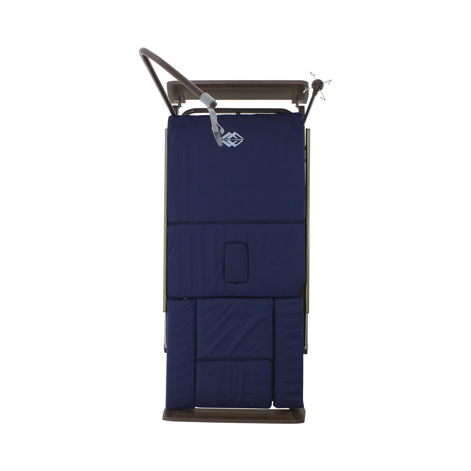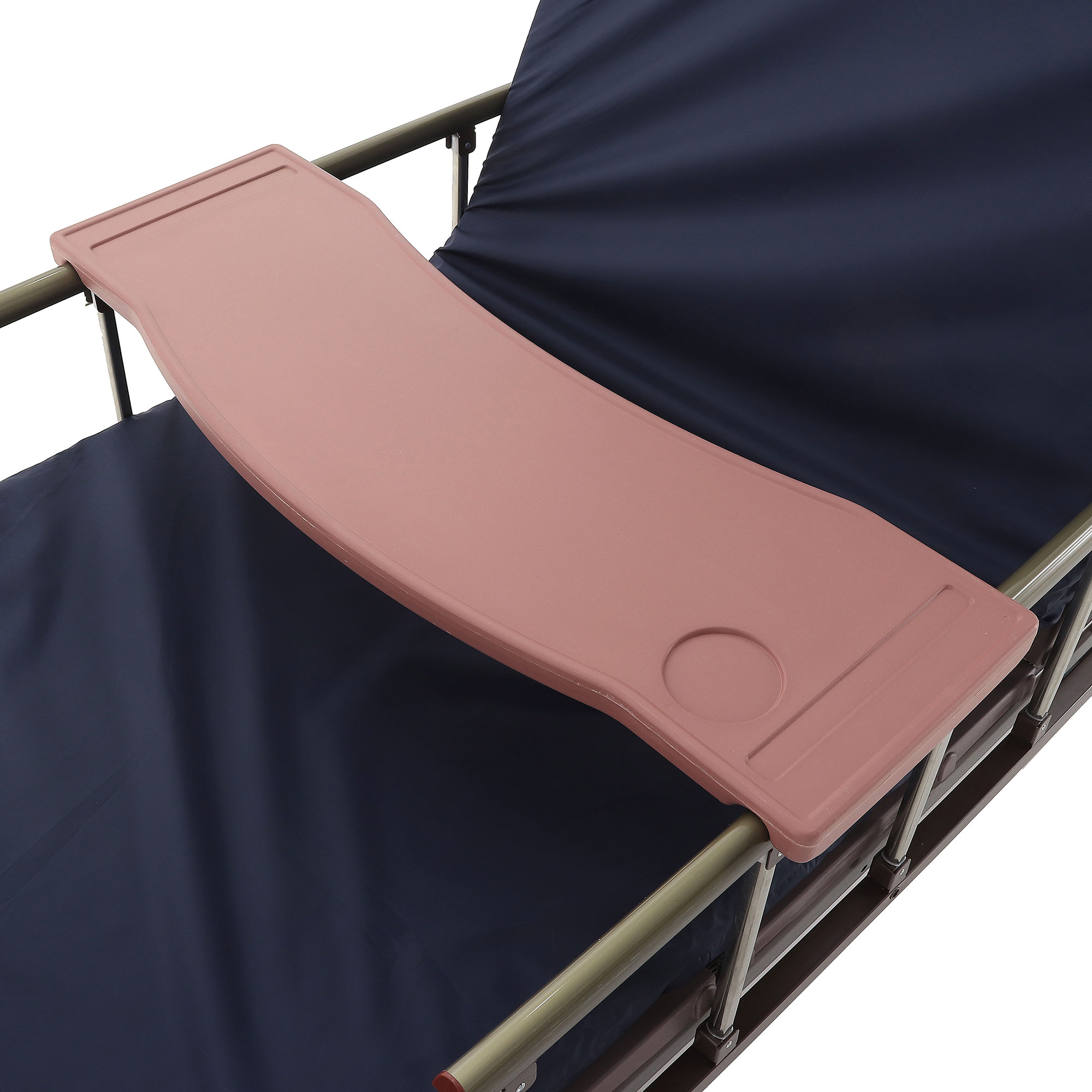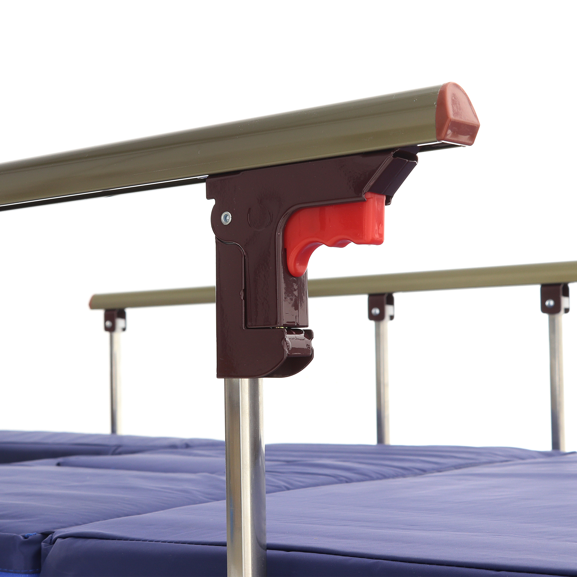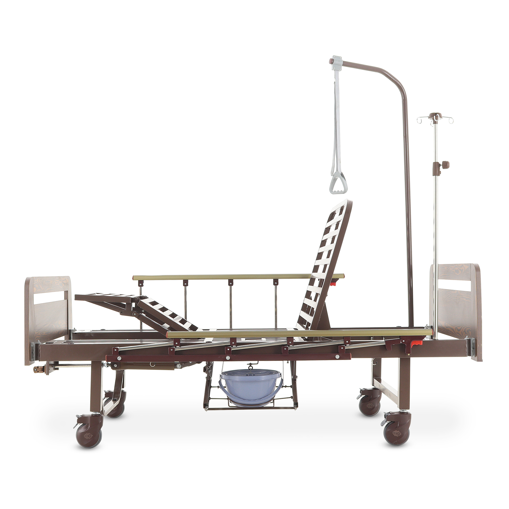 Складные боковые ограждения — компромисс между безопасностью и удобством доступа: их легко поднять, когда нужно снизить риск падения, и так же быстро опустить для проведения манипуляций. Быстросъемные спинки из ЛДСП (венге) визуально «смягчают» медицинскую обстановку — актуально для платных палат, частных клиник и домашнего ухода.