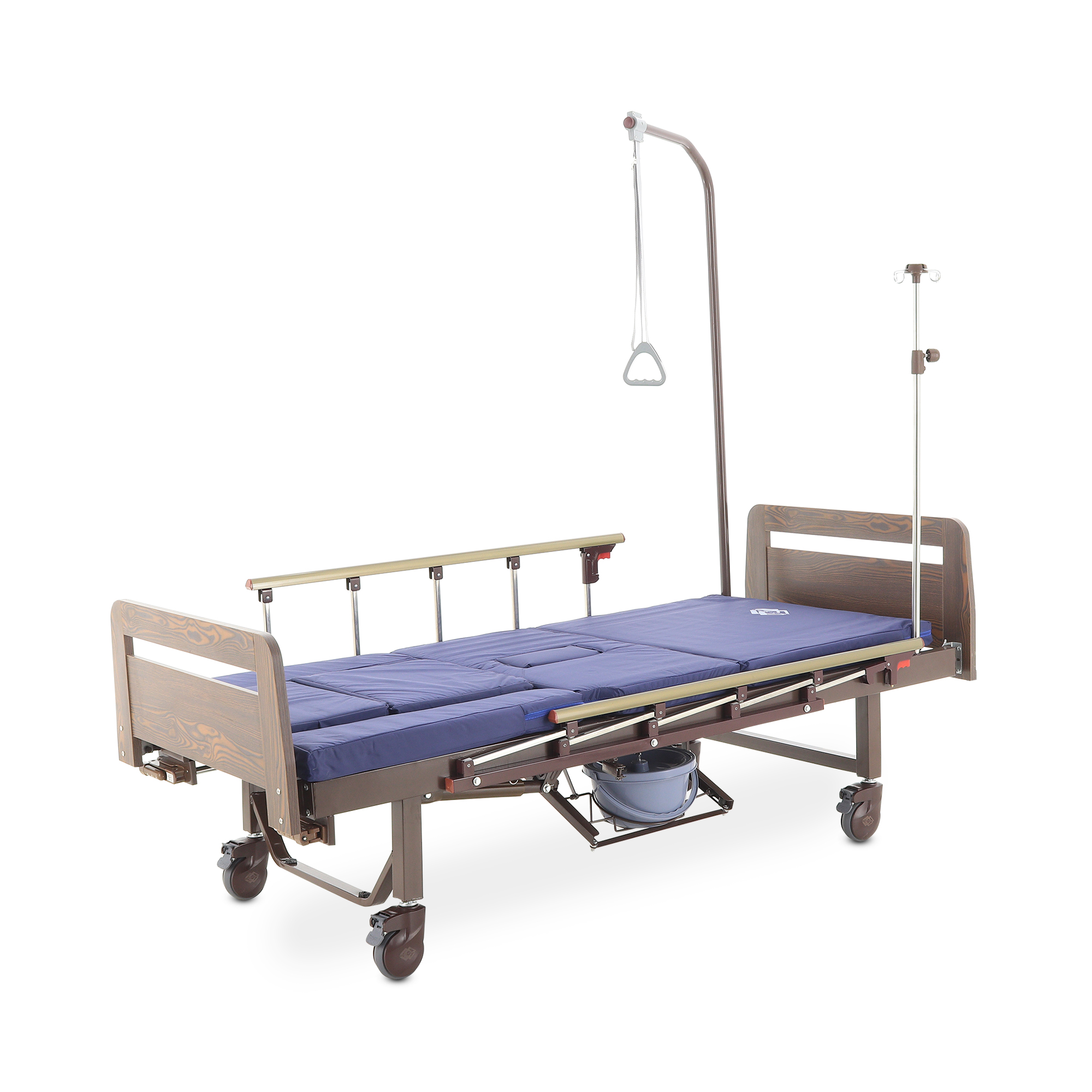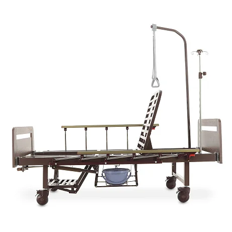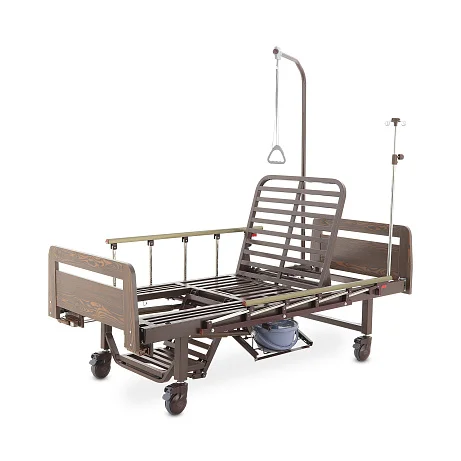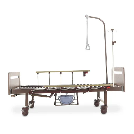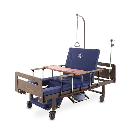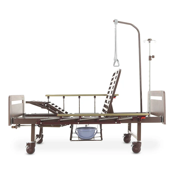 Механическая функциональная кровать Med-Mos YG-6 в отделке ЛДСП венге — практичное решение для ухода за пациентом дома или в стационаре, когда важны комфорт и простота эксплуатации. Модель не требует электропитания: надежные механические приводы позволяют легко менять положение тела и подстраивать кровать под ежедневные процедуры.