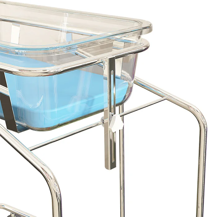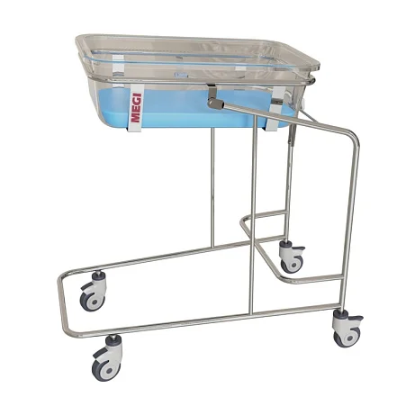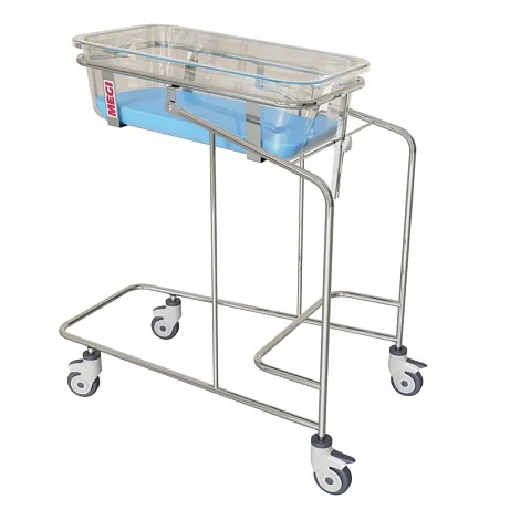 Практичная, устойчивая и легко обрабатываемая кровать‑тележка для ухода и наблюдения за новорождёнными в родильных блоках, постродовых отделениях и детских палатах. Конструкция рассчитана на ежедневную эксплуатацию в ЛПУ, выдерживает частые перемещения между постами и регулярную дезинфекцию без потери внешнего вида и функциональности.