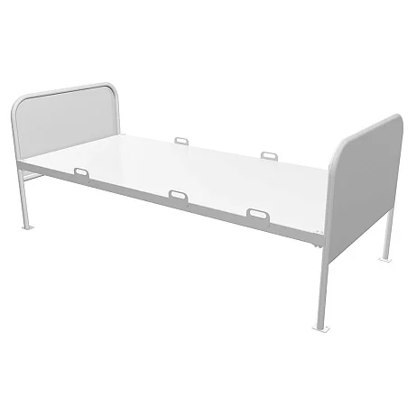Кровать предназначена для эксплуатации в психоневрологических диспансерах и в спецучреждениях. Кровать состоит из подматрацной рамы и двух спинок и представляет собой разборную конструкцию, элементы которой выполнены сварными из стального профиля с полимерно-порошковым покрытием.