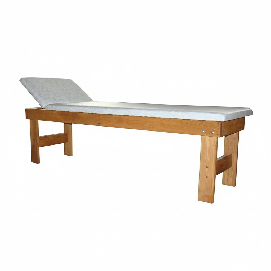 Ложе и подголовник изготовлены из ДСП толщиной 16 мм с настилом из поролона 40 мм. Такая связка дает ровную опору без ощущения «пустот» и поддерживает комфорт пациента во время процедур разной длительности.
