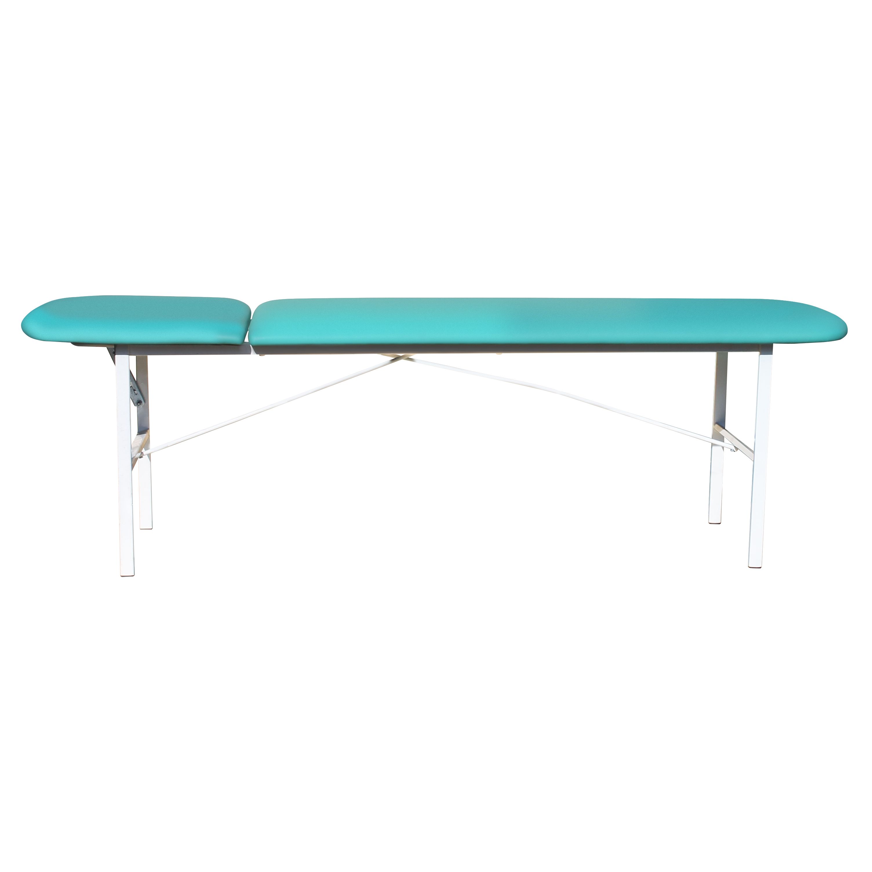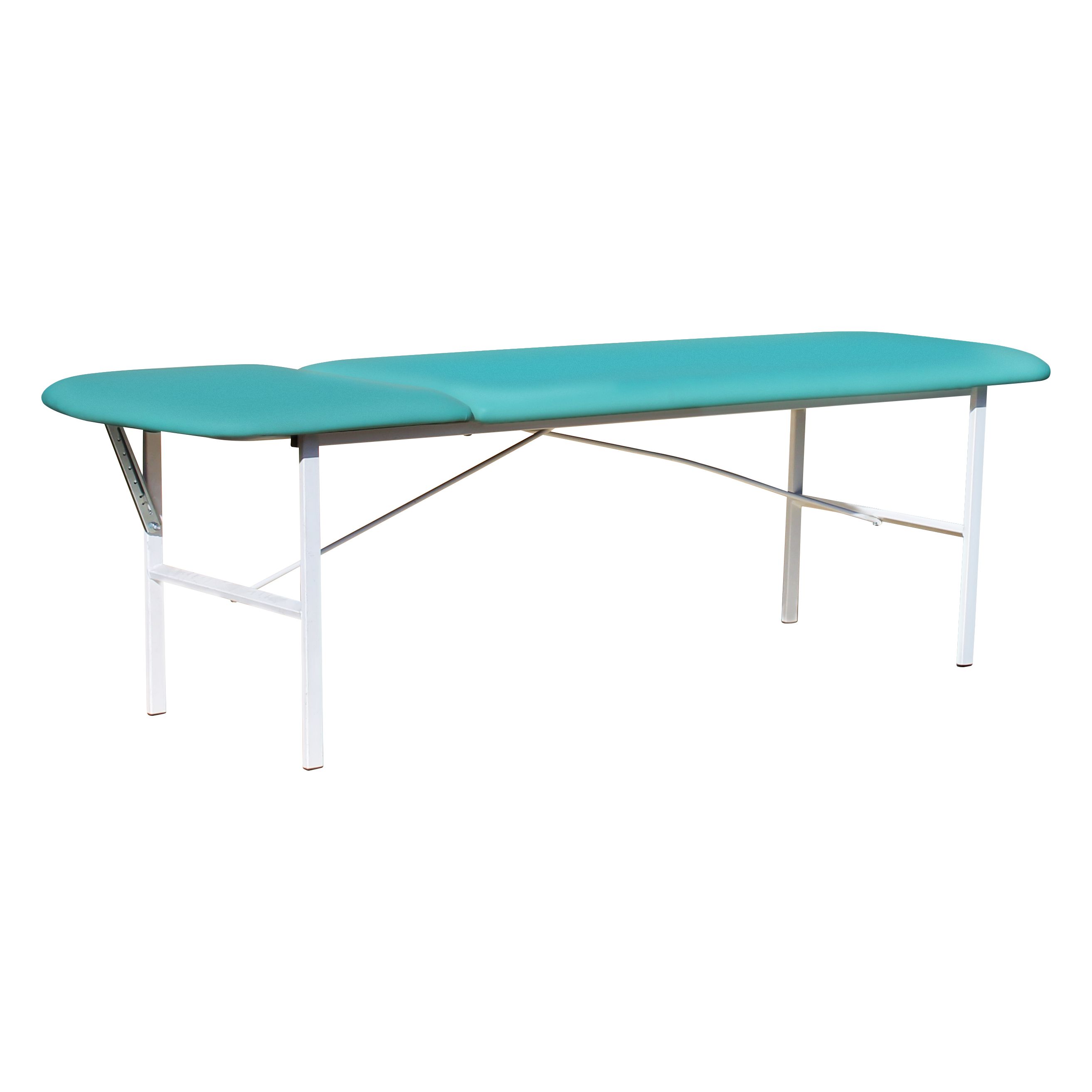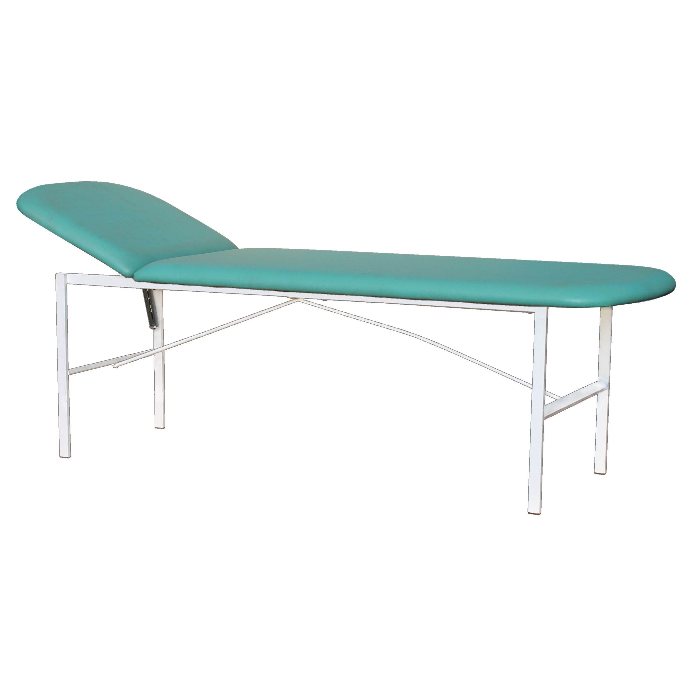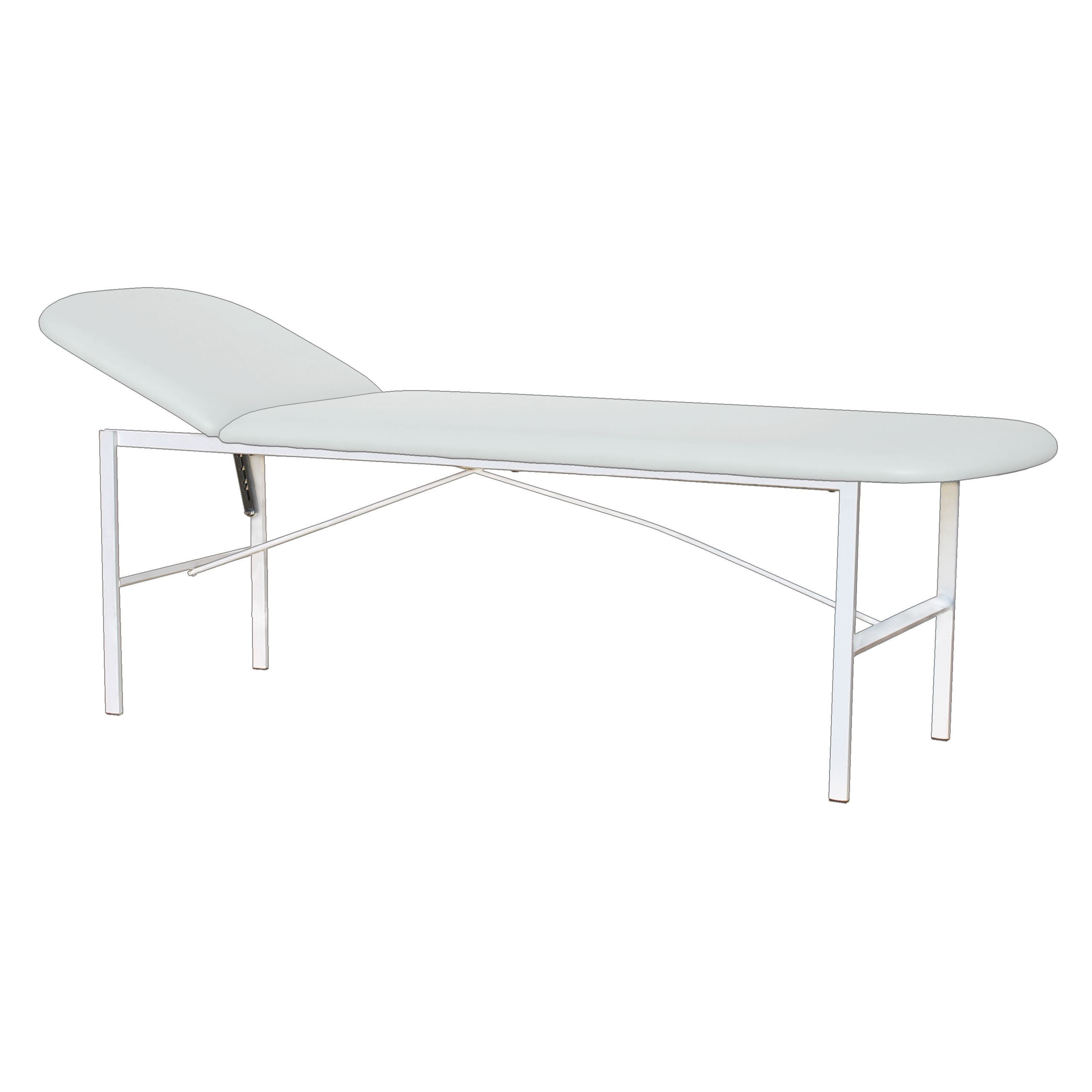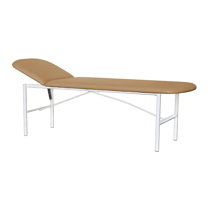 Сердце кушетки — стальной каркас из прямоугольного профиля 30×15 мм. За счёт такой базы кушетка устойчиво стоит, не «гуляет» по полу и не теряет геометрию при активной ежедневной эксплуатации. Поверхность каркаса защищена полимерно-порошковым покрытием белого цвета: оно рассчитано на регулярную санитарную обработку и контакт с дезинфицирующими растворами, применяемыми в медицине.