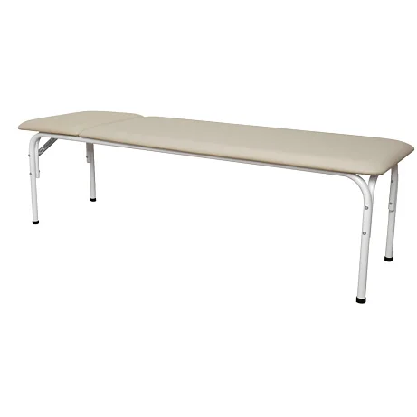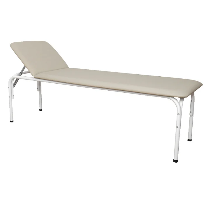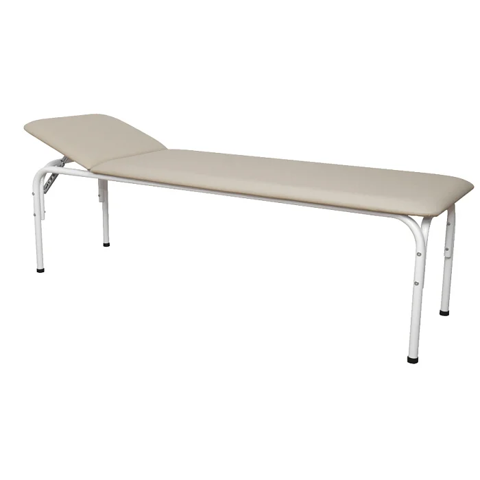 Кушетка предназначена для медицинских учреждений, для проведения осмотров пациентов. Каркас — стальная труба круглого сечения с нанесением экологически чистого полимерно-порошкового покрытия. Ложе кушетки, как и подголовник, изготовлены из фанеры, обтянуты пенополиуретаном и покрыты винилискожей бежевого цвета. Подголовник в данной модели без выреза для лица, регулируется он по пазам гребенок. Эта кушетка представляет собой разборную конструкцию. Сейчас такую модель смотровой кушетки выгоднее всего заказать c доставкой в магазине МедМебель, Москва.