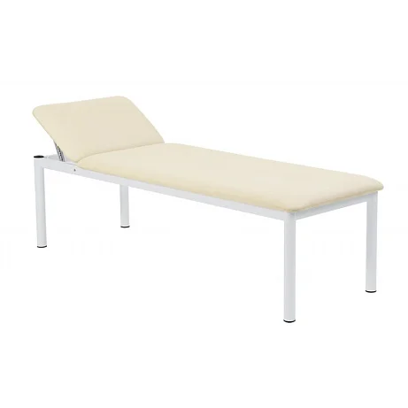 Смотровая кушетка для использования в медицинских учреждениях. Ее каркас выполнен из стальных труб прямоугольного сечения, а ножки изготовлены из стальных труб круглого сечения. Ложе и регулируемый подголовник выполнены из ДСП. Они обтянуты поролоном и винилискожей бежевого цвета. Подголовник регулируется относительно горизонтальной плоскости при помощи механизма Rastomat. Все металлические детали покрыты эпоксидной порошковой краской. Сегодня заказать эту смотровую кушетку выгоднее всего будет в московском магазине МедМебель, специализирующемся на продаже медицинской и офисной мебели.