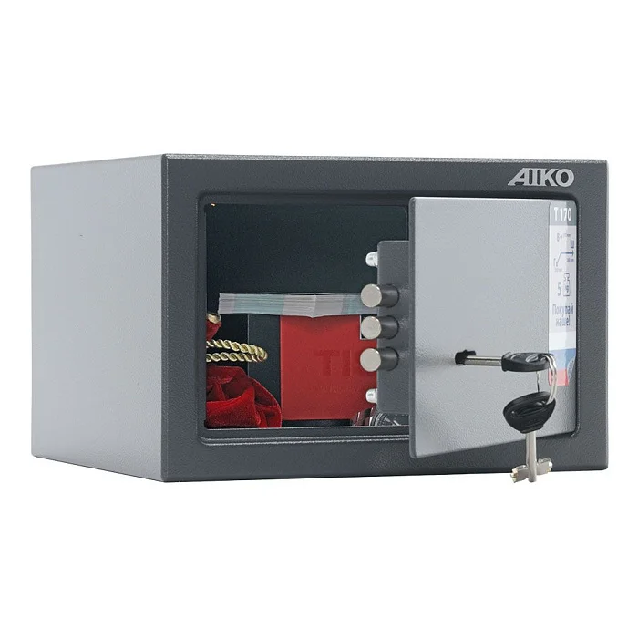 Незначительные ценности, документы и личное оружие поможет удобно хранить мебельный и офисный сейф AIKO T-170 KL. Привлекательная расцветка покрытия делает очень стильной представленную модель. Создается полимерное покрытие безопасной порошковой краской. Запирается сейф на ключевой замок Border. Корпус сейфа можно зафиксировать анкерным креплением на полу или стене. Сейф компактный и удобный.