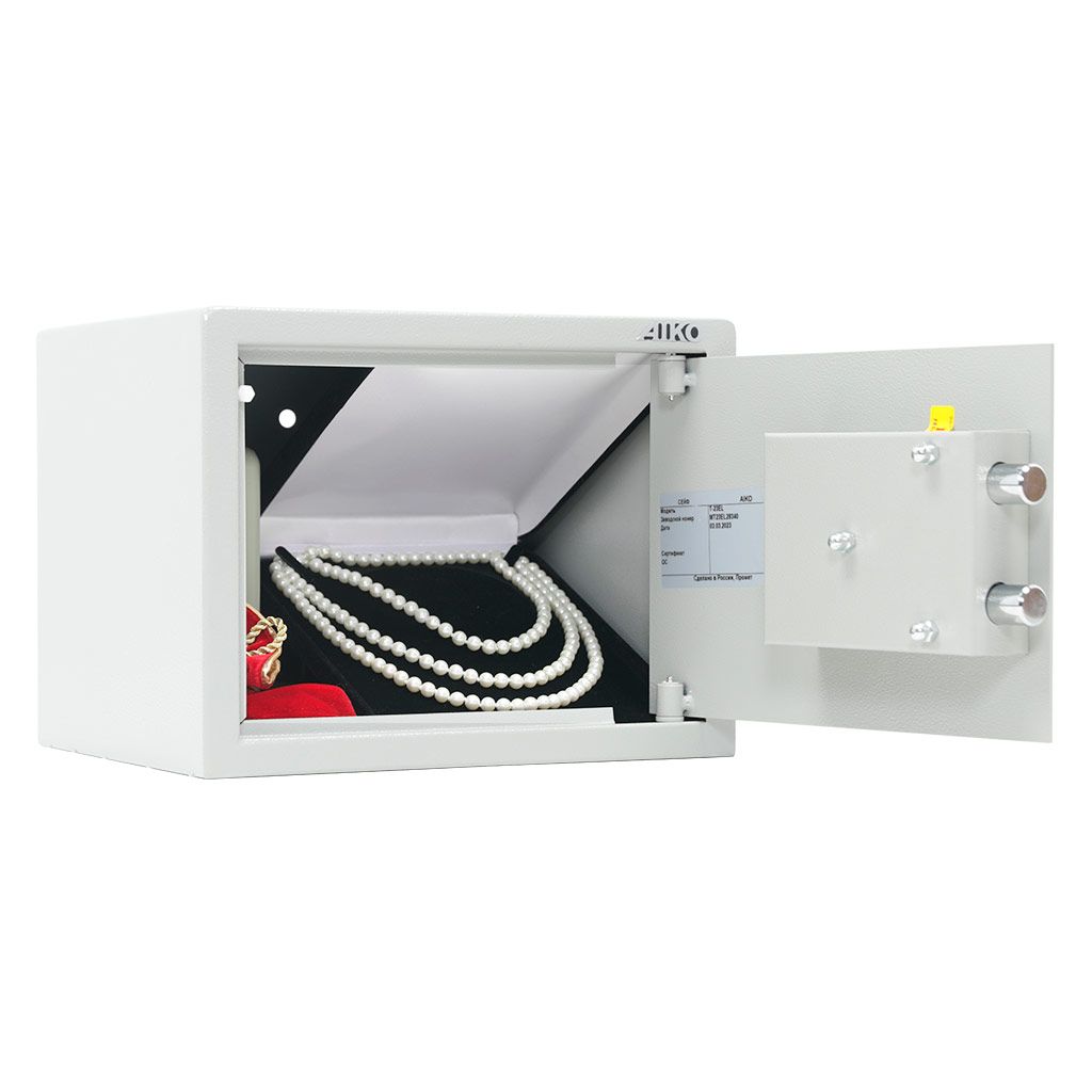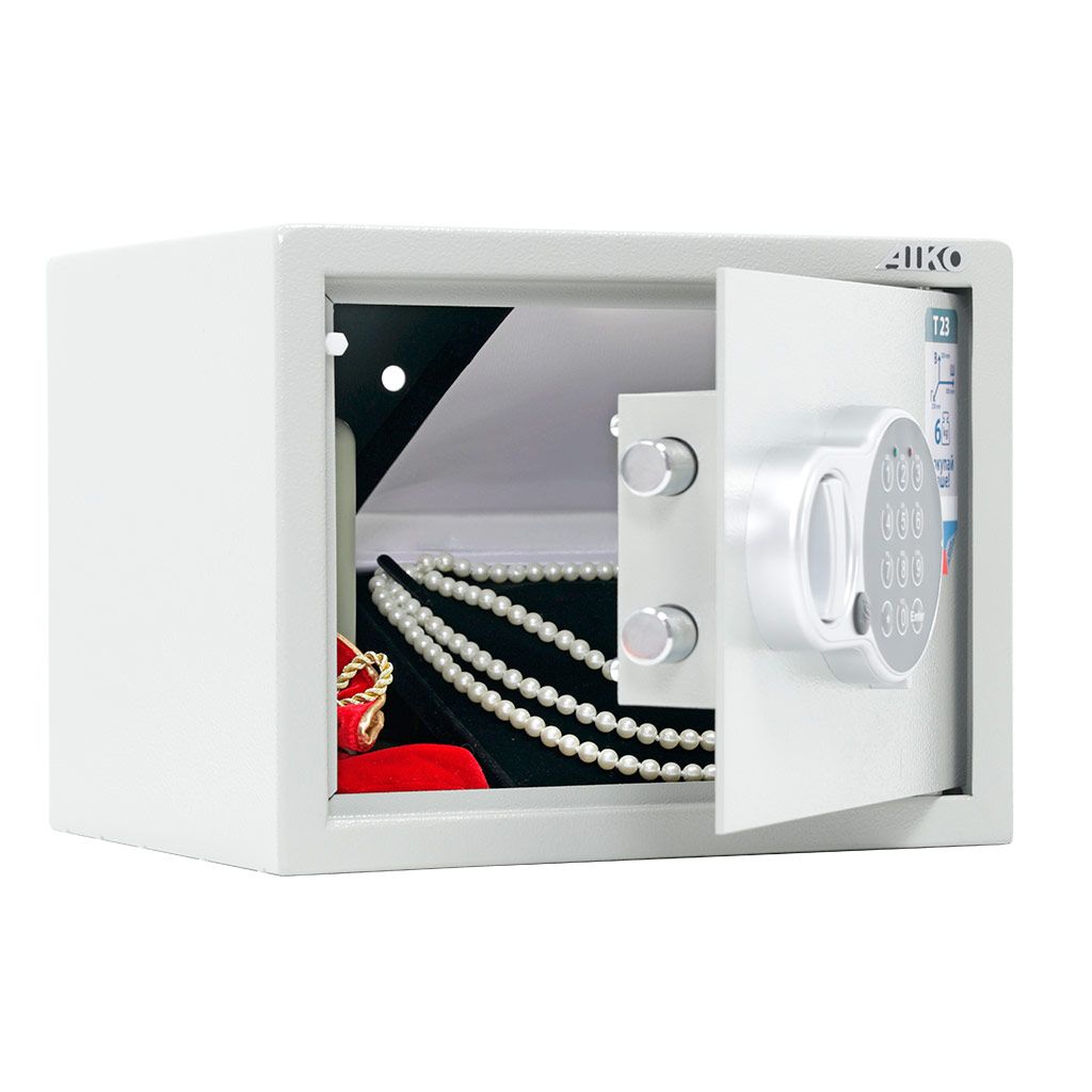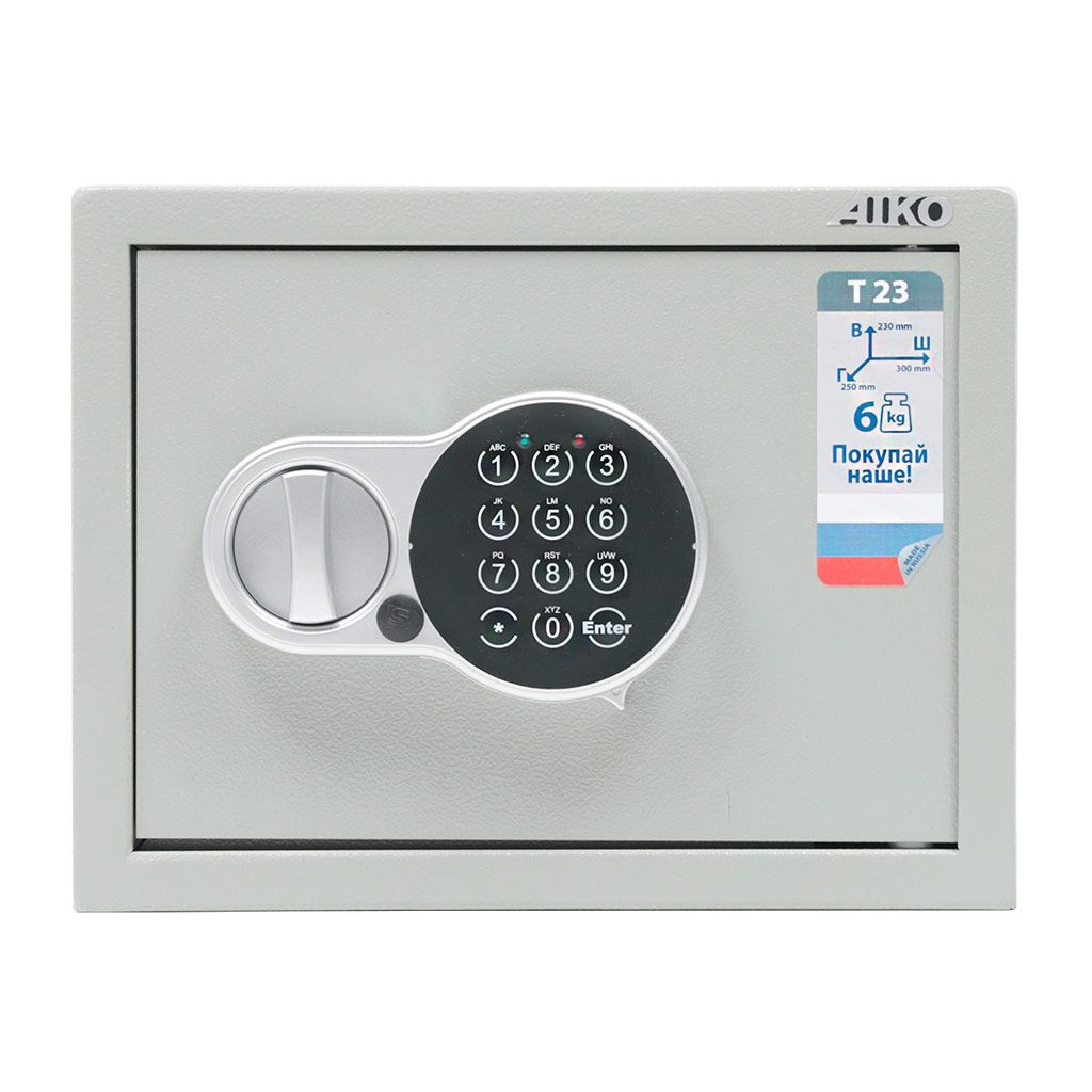 Для хранения в безопасных условиях ценных вещей и наличных денег хорошо подойдет мебельный и офисный сейф AIKO T-23 EL. Небольшая конструкция закрывается на электронный замок, который открывается кодовой комбинацией. В комплекте к сейфу прилагается аварийный мастер-ключ. Корпус можно закрепить на полу или к стене. В этом случае будет использоваться анкерное крепление. Сейф предназначен для хранения незначительных ценностей.