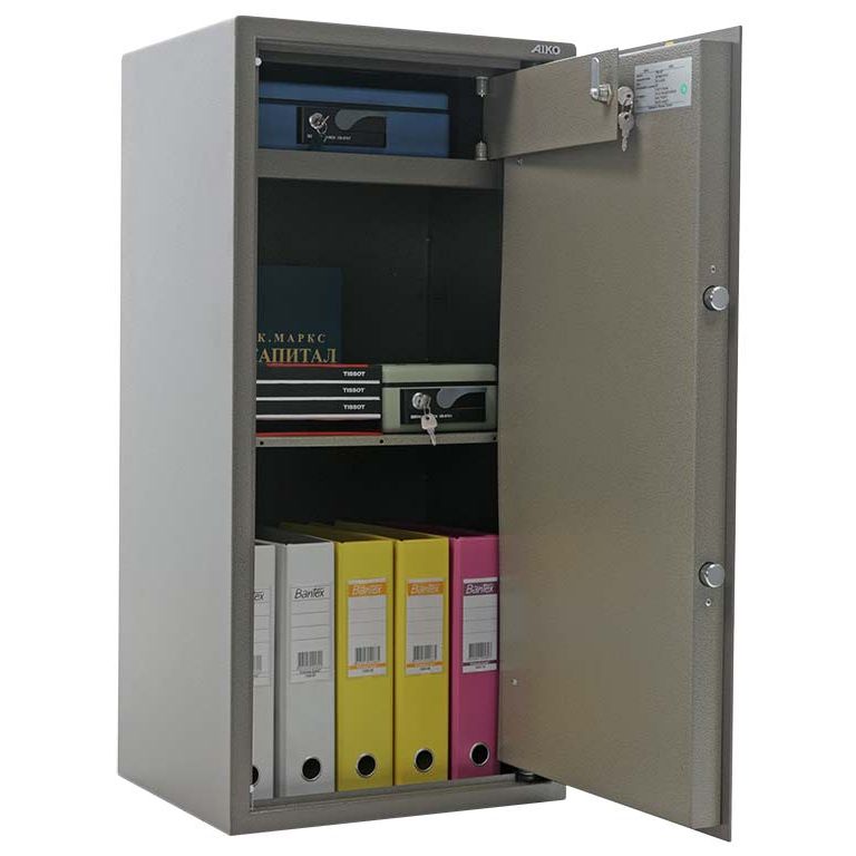Хранить важные документы и ценности удобно и безопасно позволит мебельный и офисный сейф TM-90T. Конструкция запирается на ключевой замок Border, который защищен от высверливания из двери. Зафиксировать сейф можно анкерным креплением к полу или стене. Внутри сейфа установлен дополнительный ключевой замок, который запирает небольшое отделение во внутреннем пространстве. Для удобства и практичности использования внутреннего пространства в сейфе установлена полочка.