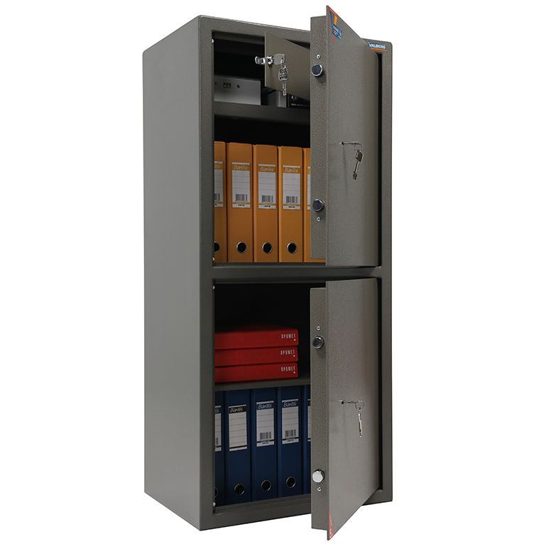 Практичный мебельный и офисный сейф Valberg ASM 120 T/2 включает два отделения, каждое из которых запирается на ключевой замок KABA MAUER. Замки защищены от высверливания. В верхней секции дополнительно предусмотрено небольшое отделение, которое запирается на собственный замок. В нем удобно хранить мелкие ценности и наличные деньги. По ГОСТ сейф обладает классом устойчивости ко взломам S1. Для фиксации сейфа может использоваться анкерное крепление. С его помощью можно закрепить конструкцию на полу или к стене.
