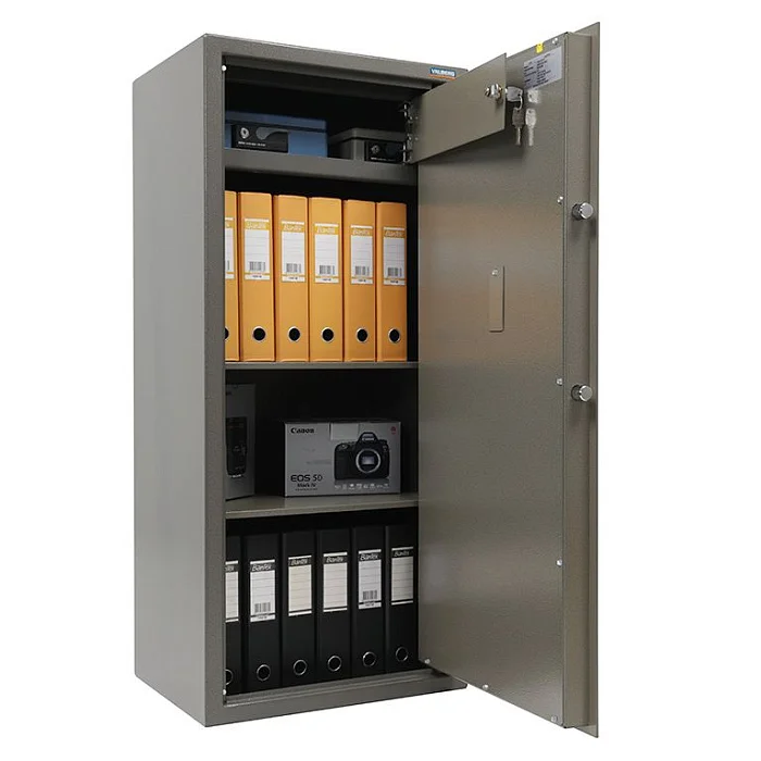Мебельный и офисный сейф Valberg ASM 120 T EL не будет занимать много места в помещении, при этом он достаточно вместительный и практичный. Основная дверца запирается на электронный замок, который открывается кодовой комбинацией. Замок защищен от высверливания. Конструкцию можно закрепить на полу или зафиксировать на стене при помощи анкеров. Внутри сейфа предусмотрены две полки, которые разделяют пространство на секции и позволяют хранить отдельно друг от друга ценности из различных категорий.