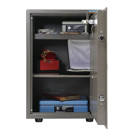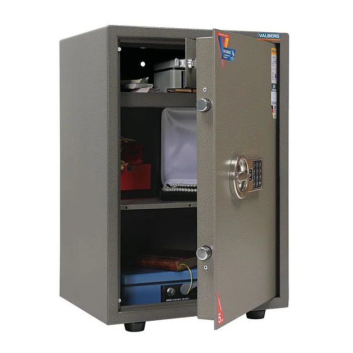 Надежный мебельный и офисный сейф Valberg ASM 63 T EL оснащен электронным замком, который открывается кодом. Комбинацию в нем можно сменить по желанию. Замок защищен от высверливания, что помогает предотвратить взлом. По ГОСТ сейф относится к классу взломостойкости S1. Внутри сейфа предусмотрено небольшое отделение, которое закрывается на собственный ключевой замок. В нем лучше всего хранить наличные. Для хранения документации с наибольшим удобством остальное пространство сейфа разделено полочкой на секции.