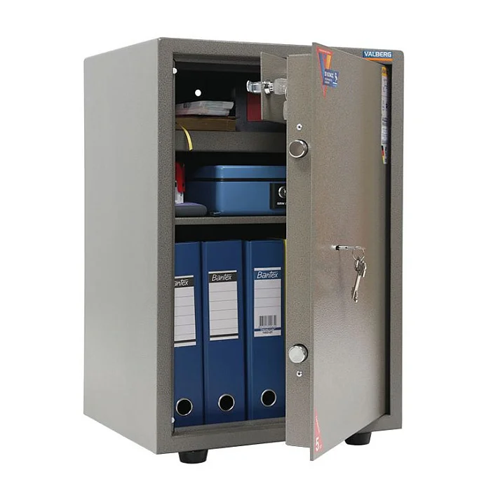 Мебельный и офисный сейф Valberg ASM 63 T включает дополнительную секцию внутри, которая закрывается на отдельный ключевой замок. Основная дверца сейфа также оснащена замком, который запирается на ключ и защищен от высверливания. Также внутри сейфа предусмотрена полочка, которая разделяет пространство и позволяет хранить вещи из разных категорий с наибольшим удобством. Корпус сейфа можно закрепить анкерами к стене или к полу. Сейф относится к классу S1 по устойчивости ко взлому согласно ГОСТ.