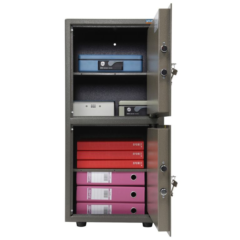 Мебельный и офисный сейф Valberg ASM 90/2 — это удобная конструкция, в которой две секции запираются на отдельные ключевые замки. Оба они защищены от высверливания. Установлены в сейфе замки KABA MAUER. По ГОСТ конструкция относится к классу устойчивости ко взломам S1. Сейф можно закрепить анкерами как к полу, так и к стене. Внутри каждой секции установлено по полочке, чтобы можно было разделить на категории и хранить ценности отдельно друг от друга.